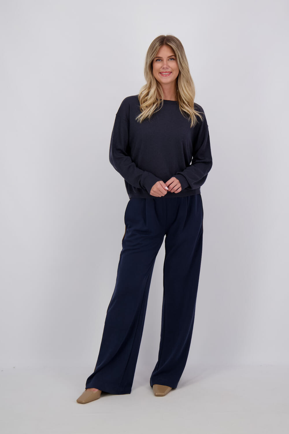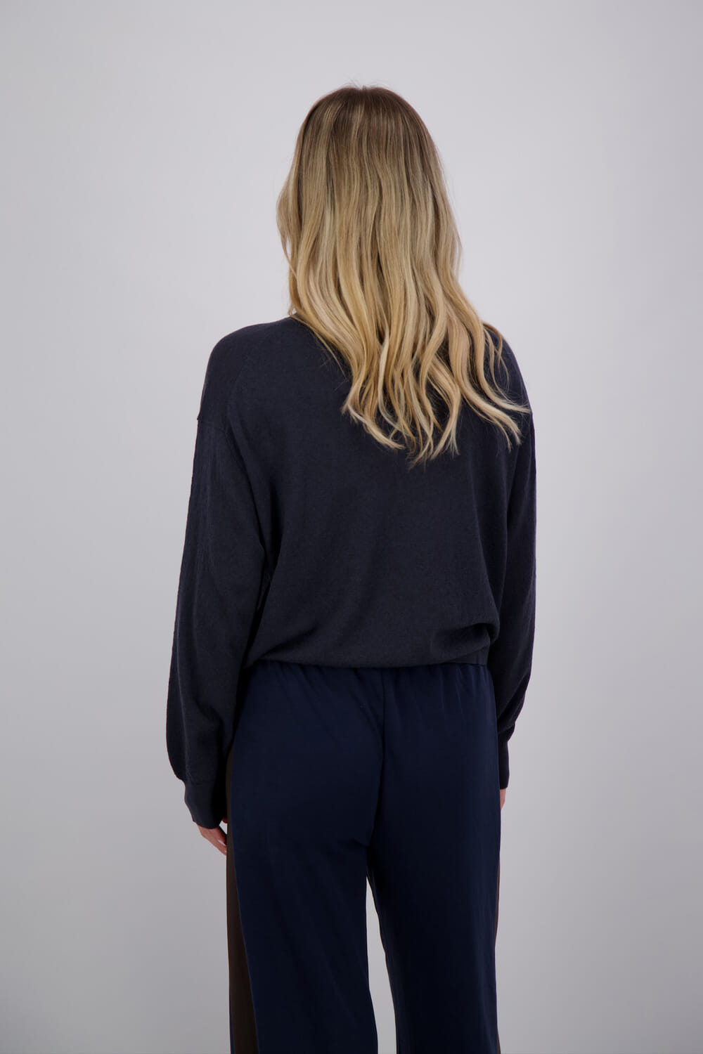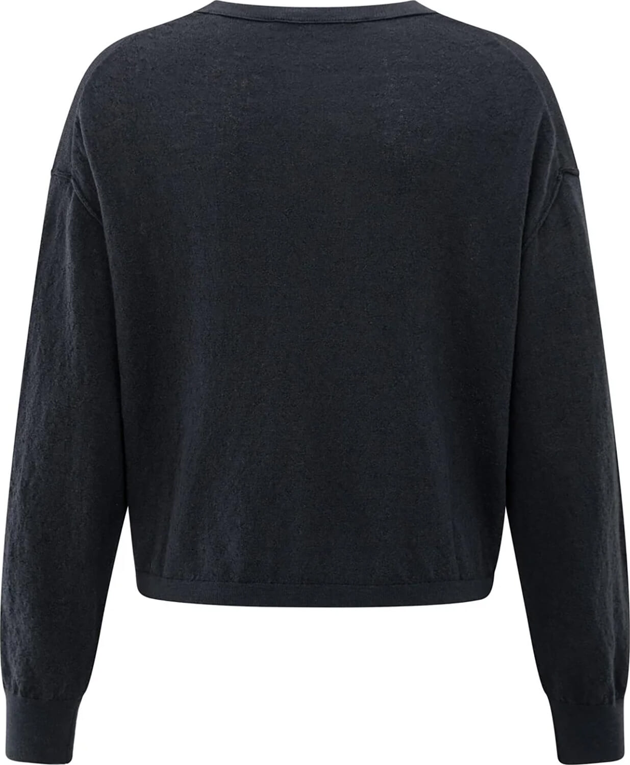 Deze trui is gemaakt van een zachte, licht gemêleerde stof en heeft een ronde hals, een losse pasvorm, verlaagde schoudernaden en lange mouwen met geribde boorden. De subtiele textuur en licht cropped lengte zorgen voor een moderne uitstraling. Een comfortabel en stijlvol item voor een casual look.