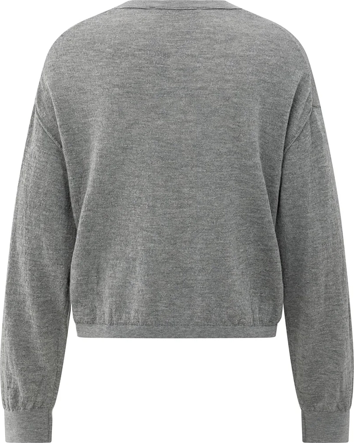 Deze trui is gemaakt van een zachte, licht gemêleerde stof en heeft een ronde hals, een losse pasvorm, verlaagde schoudernaden en lange mouwen met geribde boorden. De subtiele textuur en licht cropped lengte zorgen voor een moderne uitstraling. Een comfortabel en stijlvol item voor een casual look.