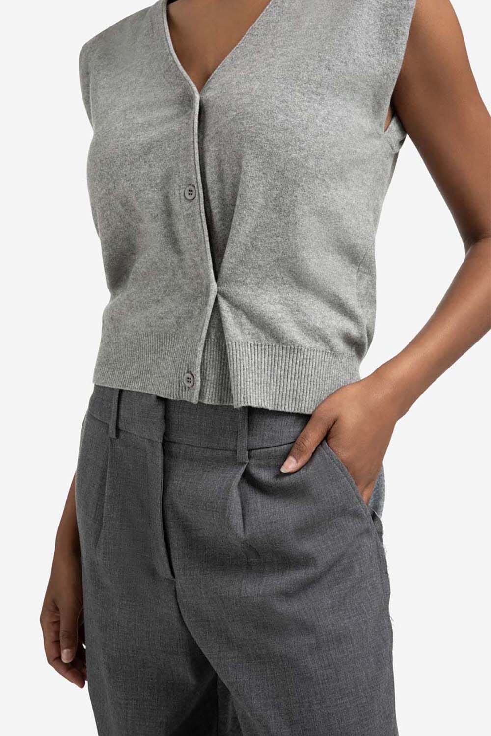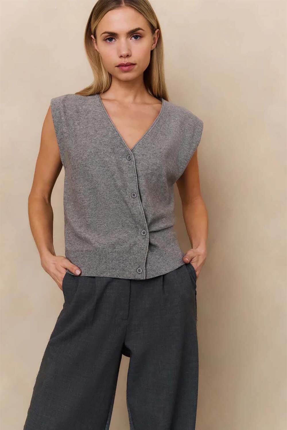 Gilet van Yaya, een stijlvol vest met een minimalistische uitstraling. Voorzien van een V-hals en knoopsluiting, biedt het een regular pasvorm zonder mouwen. Het is een veelzijdig kledingstuk dat moeiteloos kan worden gecombineerd voor een moderne, stijlvolle look.