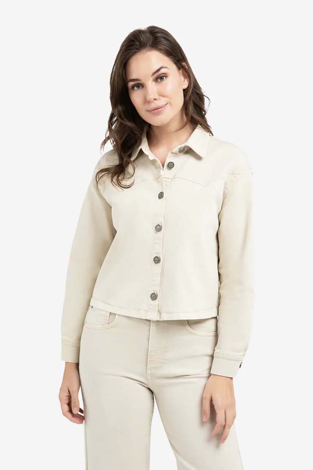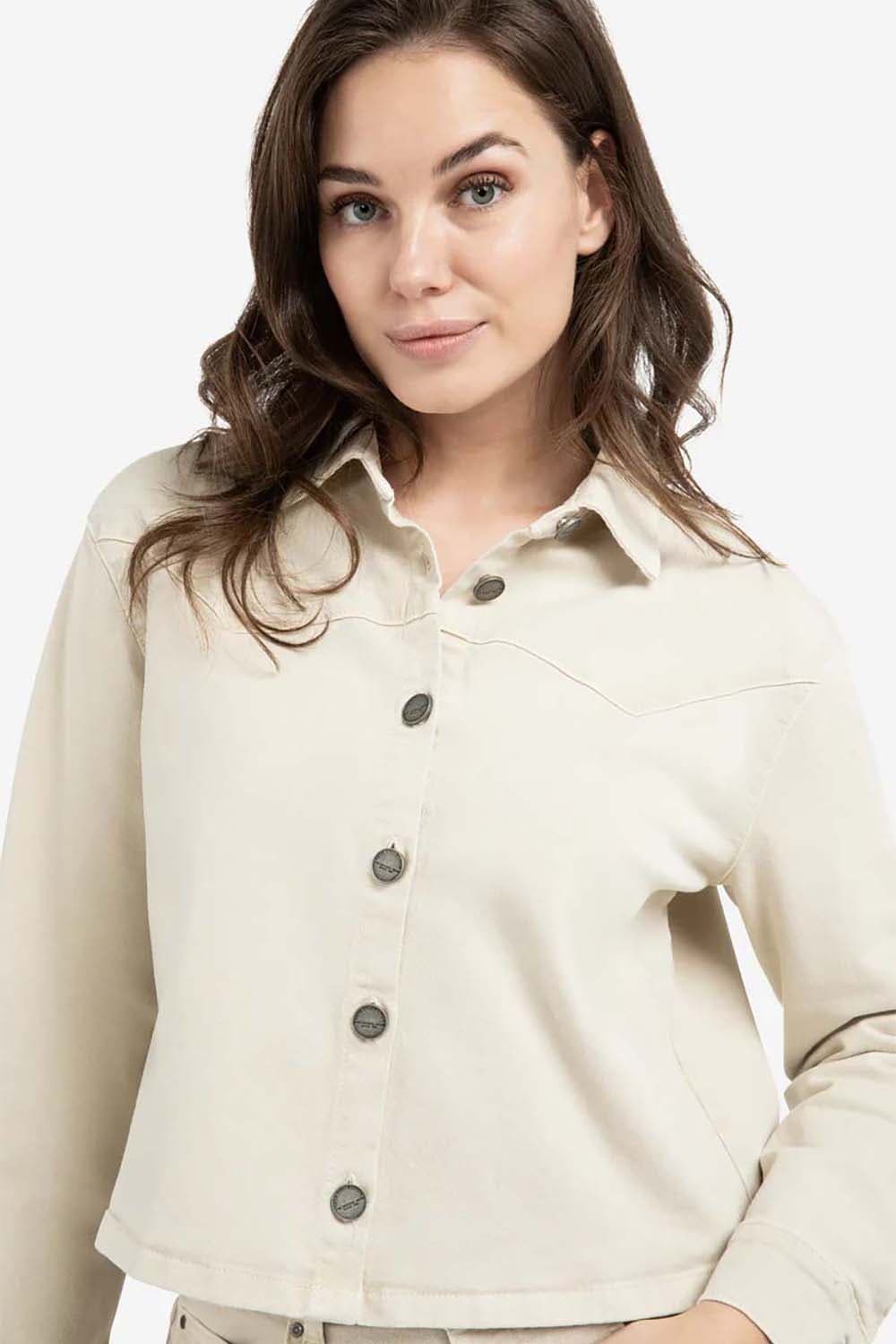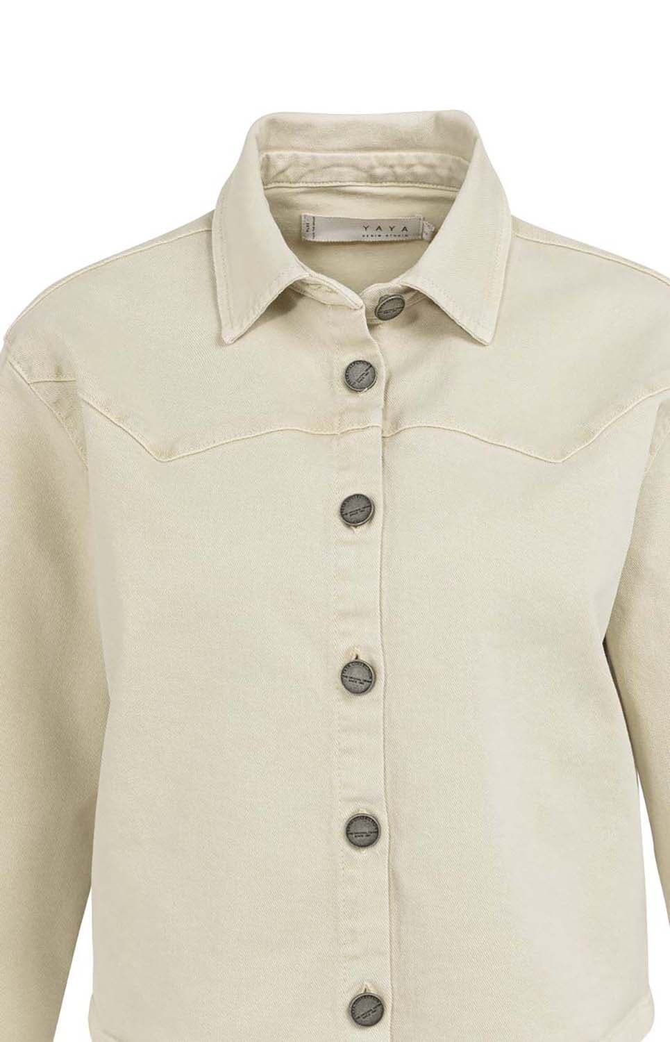 Dit gekleurde korte denim jasje is gemaakt van stevig katoen. Het model heeft een klassieke kraag, een losse pasvorm, lange mouwen en een knoopsluiting. De siernaden op de borst geven een verfijnde en moderne touch aan het ontwerp.