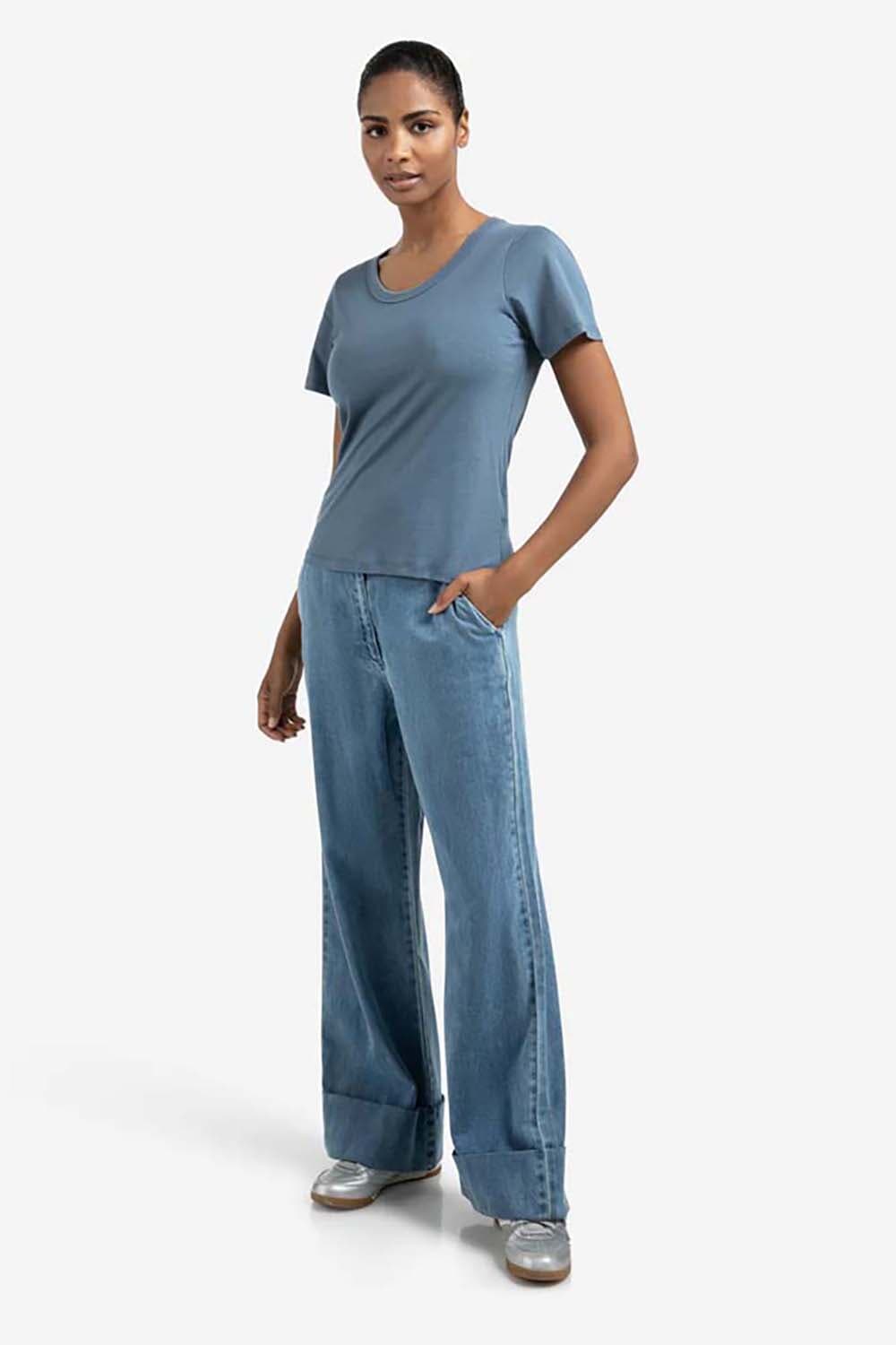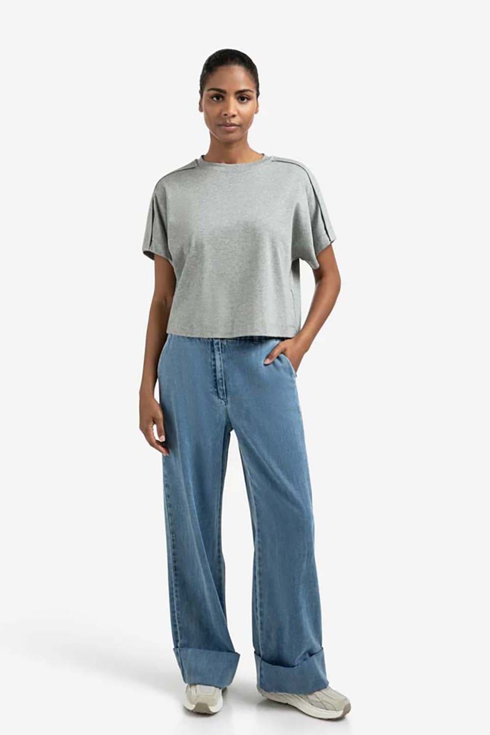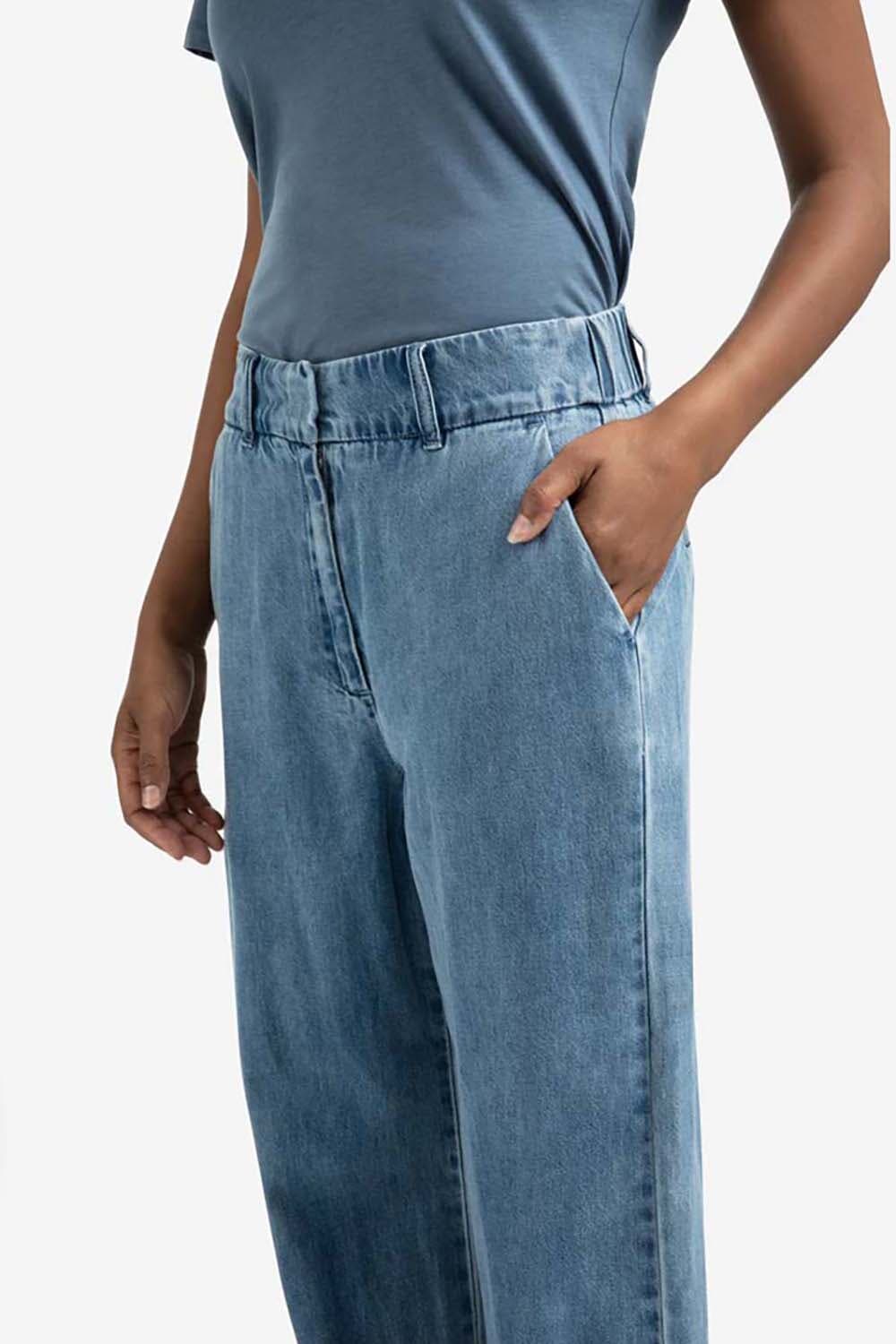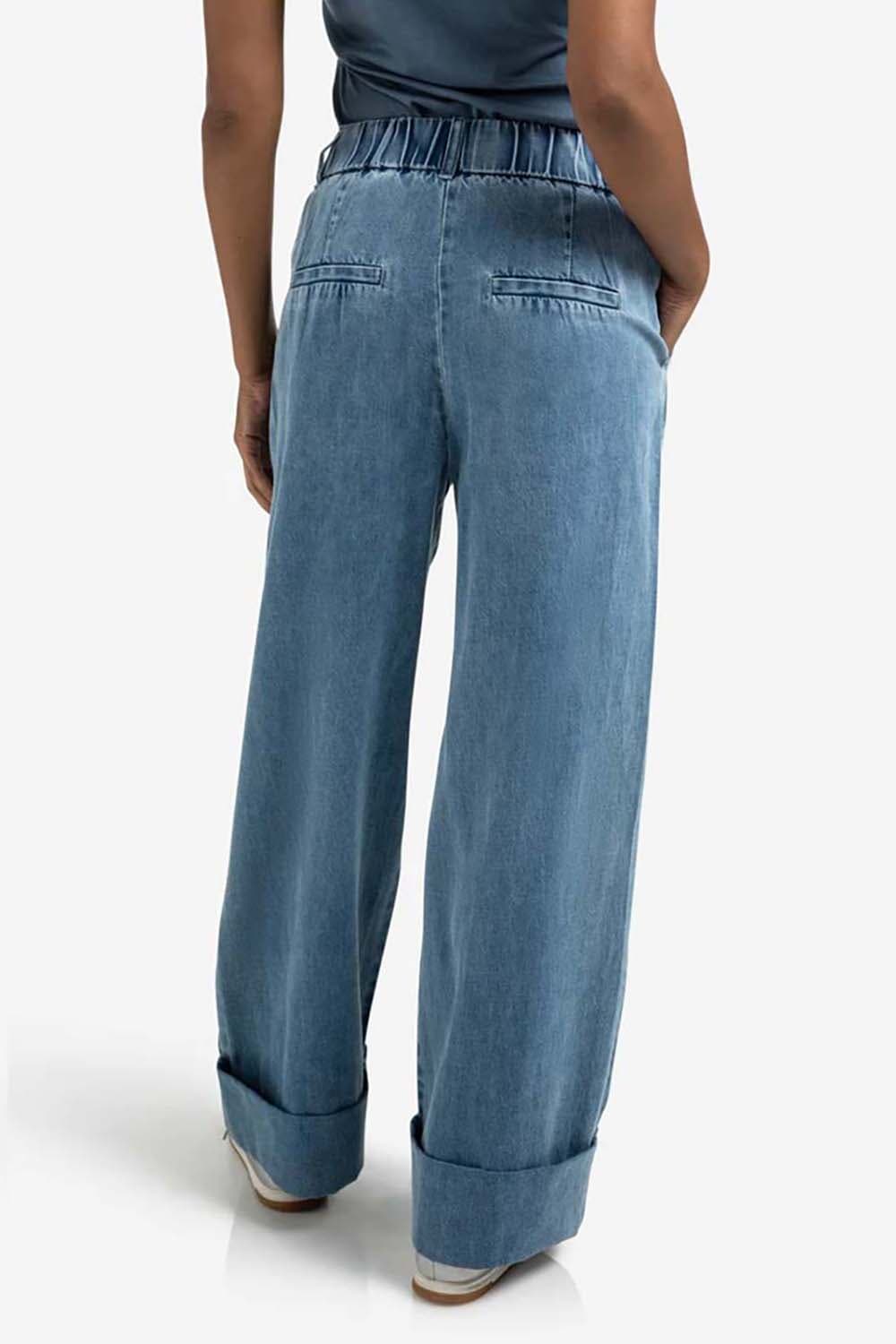Jeans van Yaya, een stijlvolle dames jeans met een casual uitstraling. De wijde pijpen geven een modieuze twist, terwijl de voor- en achterzakken praktisch zijn. Perfect voor een ontspannen dagje uit, deze broek combineert comfort en stijl moeiteloos.