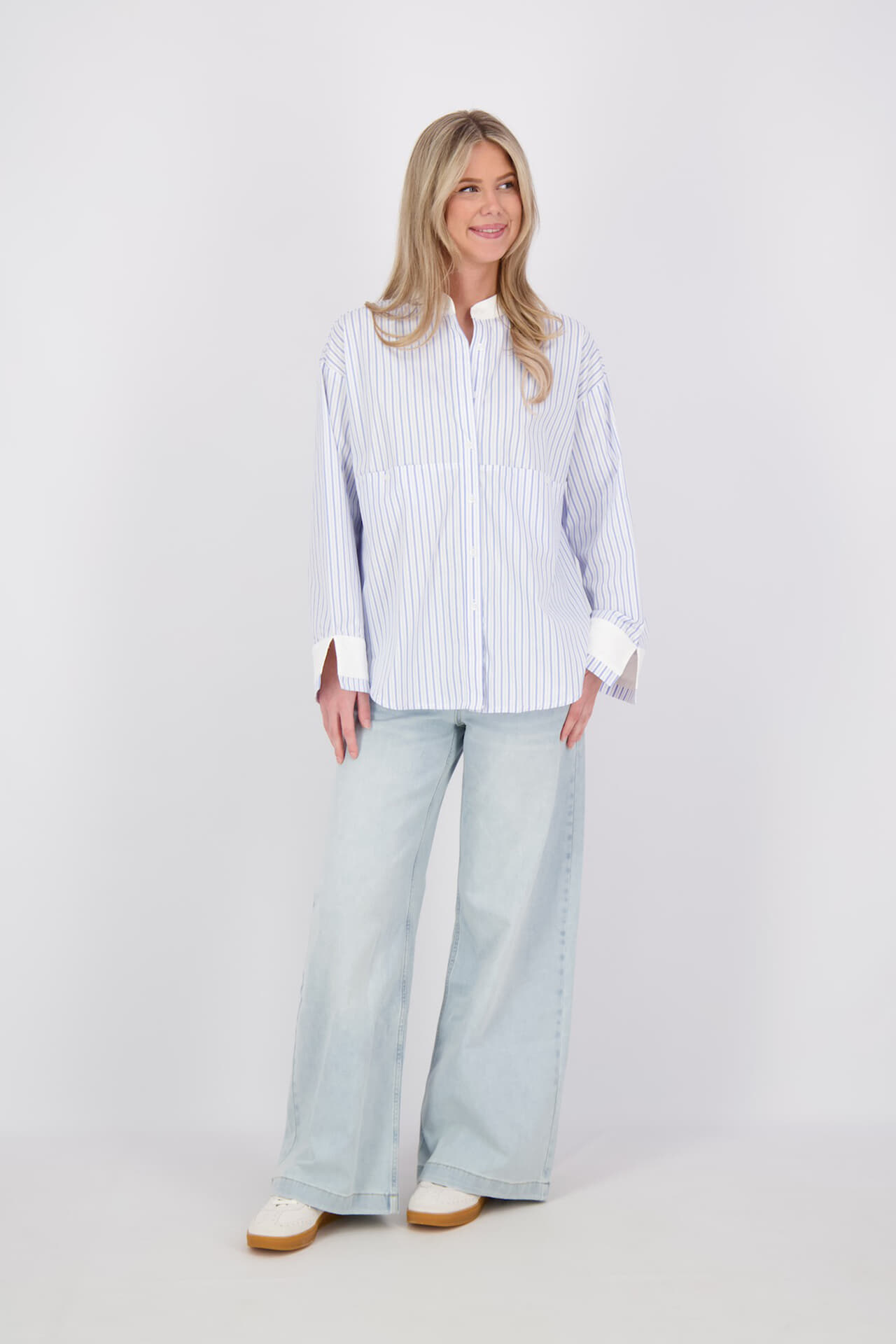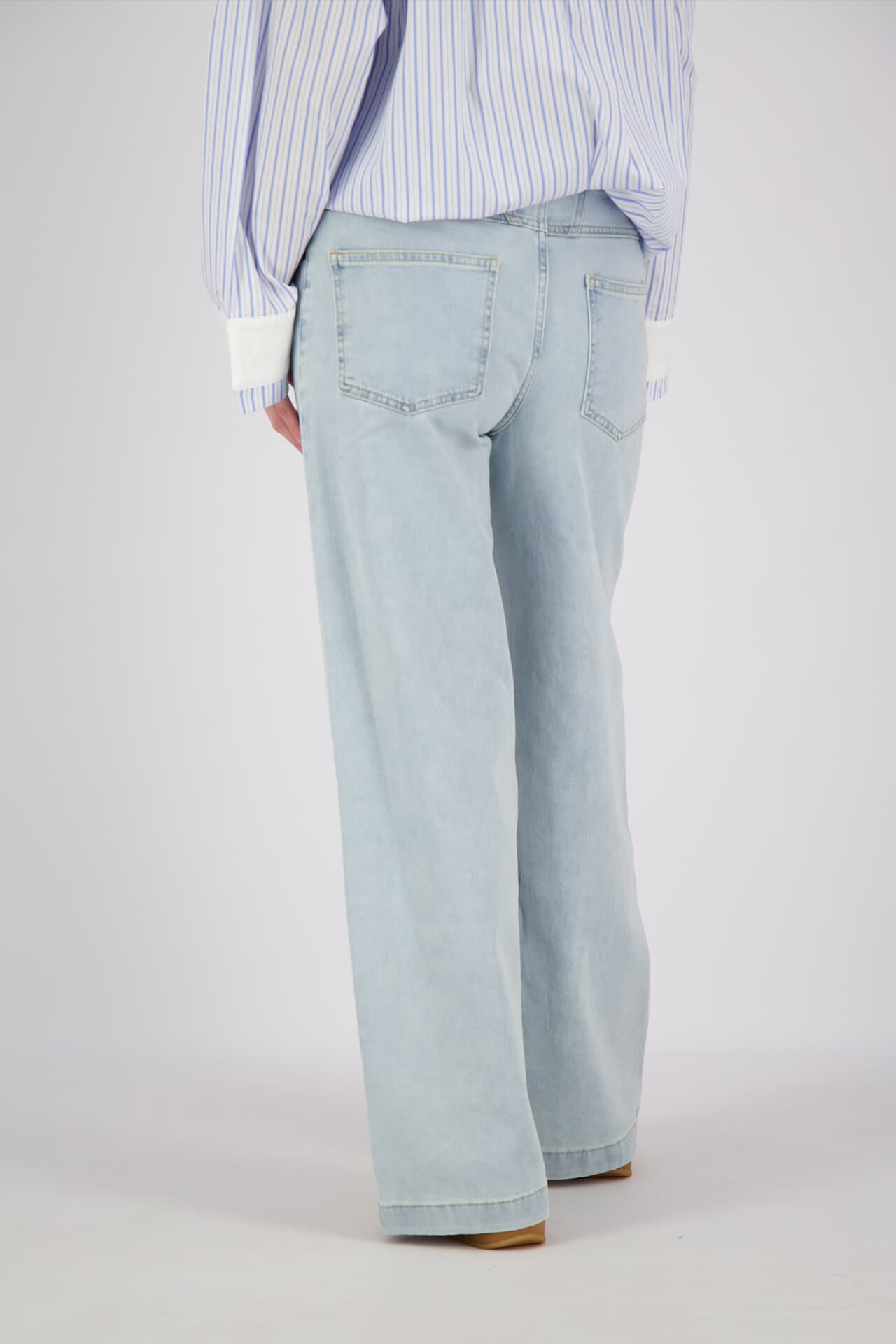 Jeans van Yaya met normale taille, relaxed pasvorm en wijde pijp. De effen, lichtblauwe wassing geeft een frisse, casual uitstraling. Voorzien van 5 zakken, riemlussen en een knoop- en ritssluiting. Combineer met een T-shirt en sneakers voor een praktische, stijlvolle set.