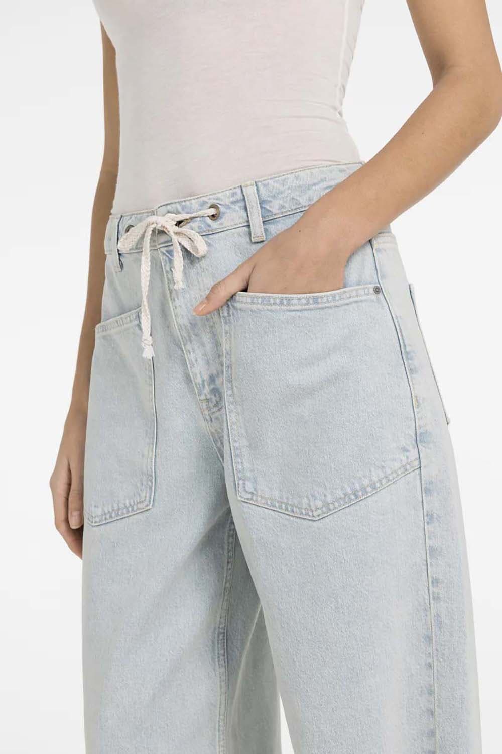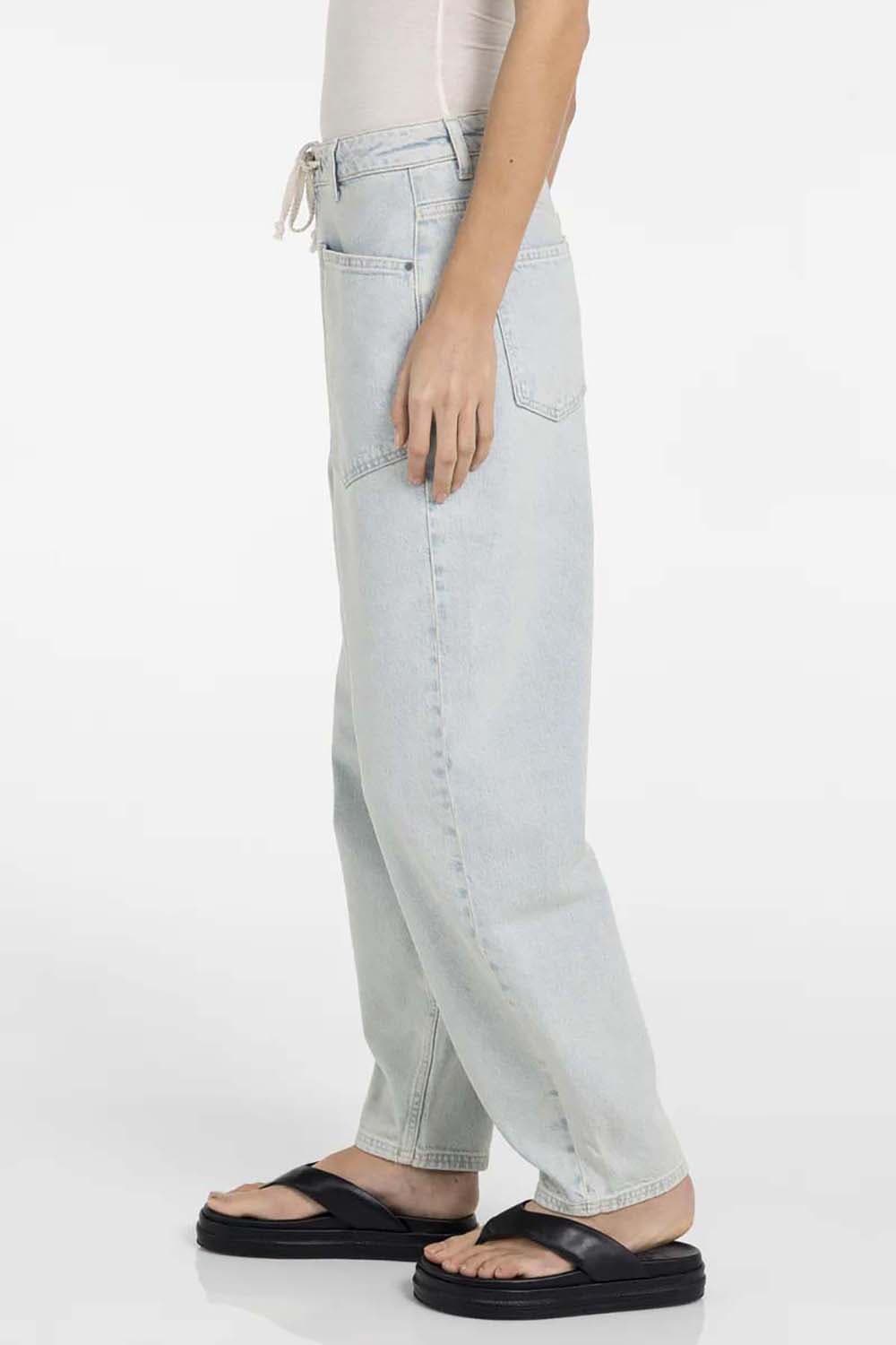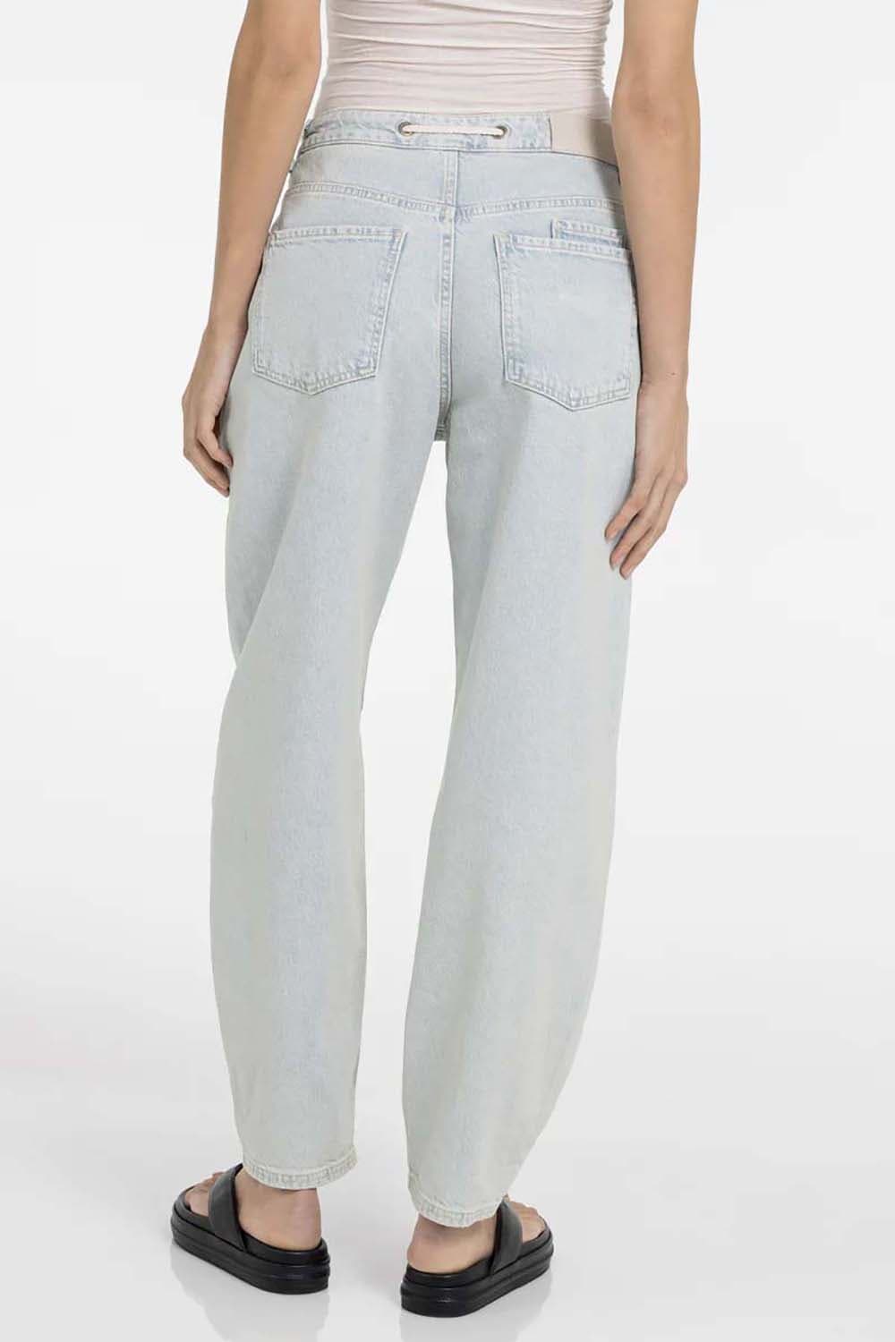 Jeans van Yaya met hoge taille en mom fit voor een relaxte, casual uitstraling. De effen denim heeft een koordsluiting met ringen, riemlussen en opgestikte voorzakken. Achterzakken zorgen voor extra functionaliteit. Combineer met een T-shirt en sneakers voor een makkelijke set.