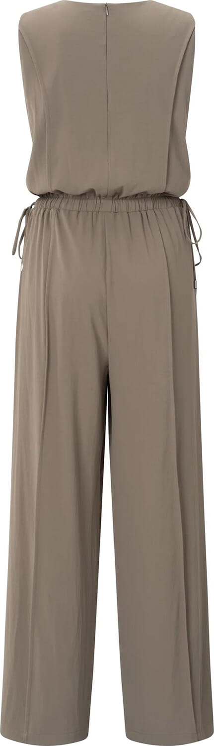 De Jumpsuit with cord van Yaya is een stijlvolle dames jumpsuit met een minimalistisch design. Deze mouwloze jumpsuit heeft een elastische taille en zakken aan de voorzijde, en is uitgevoerd in een effen patroon. Perfect voor een moeiteloos modieuze uitstraling.
