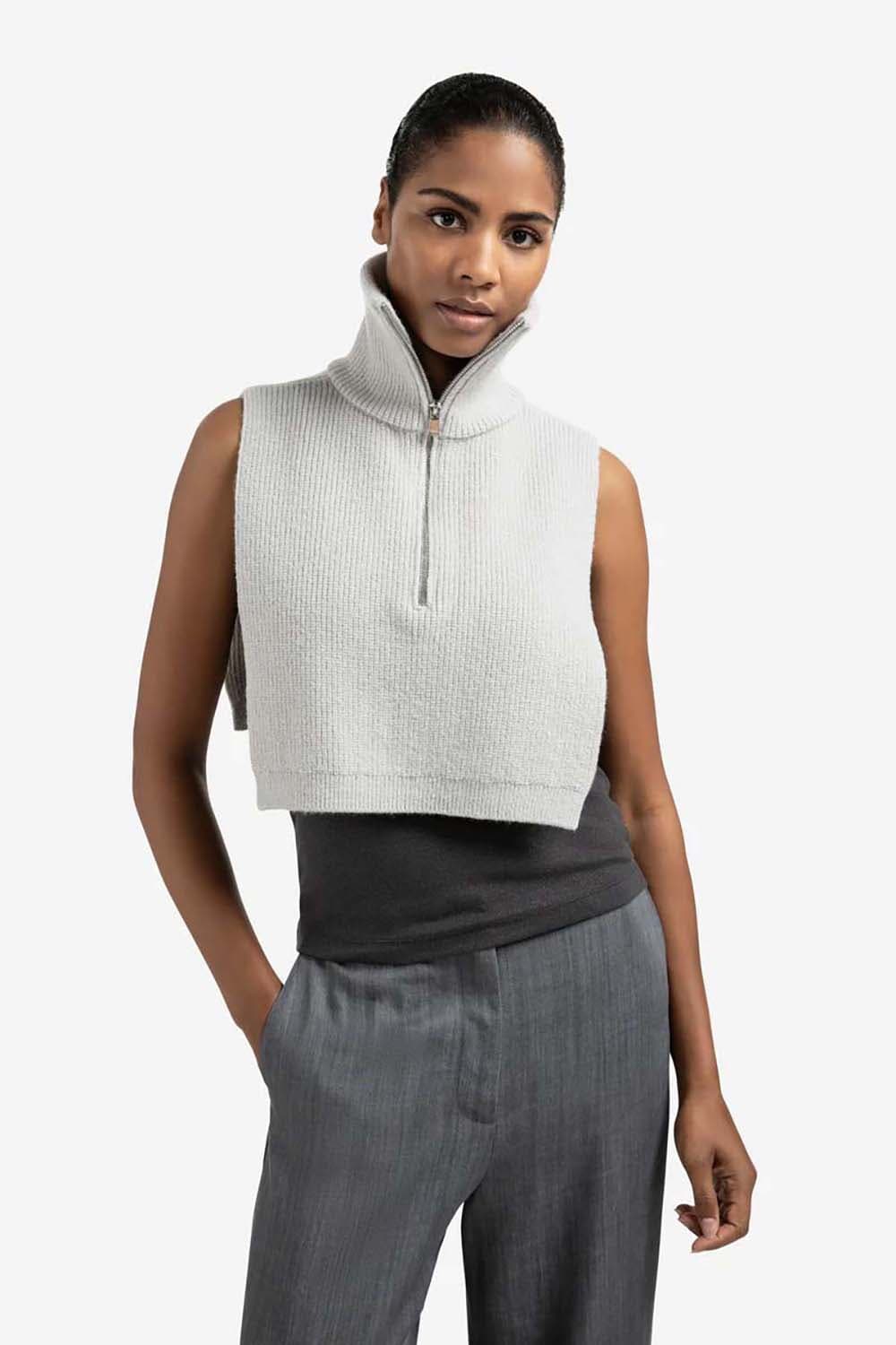 Deze kraag sjaal van Yaya biedt een minimalistisch ontwerp met een opstaande kraag en een handige ritssluiting. De cropped fit en mouwloze stijl geven een trendy uitstraling, perfect voor elke gelegenheid. Het effen patroon maakt het een veelzijdig modeaccessoire.
