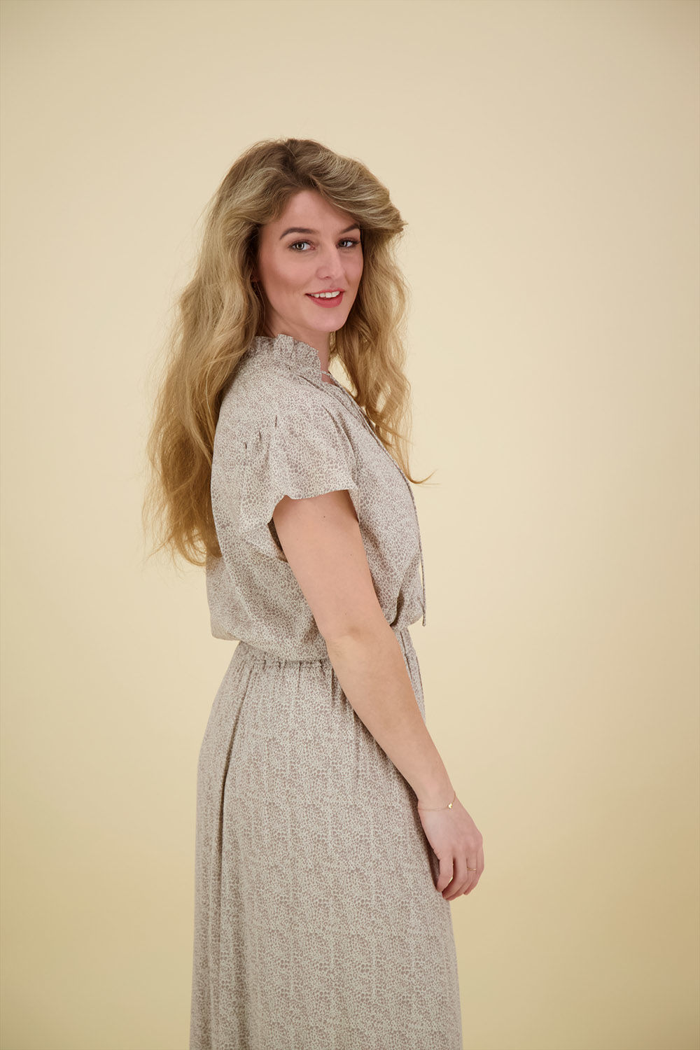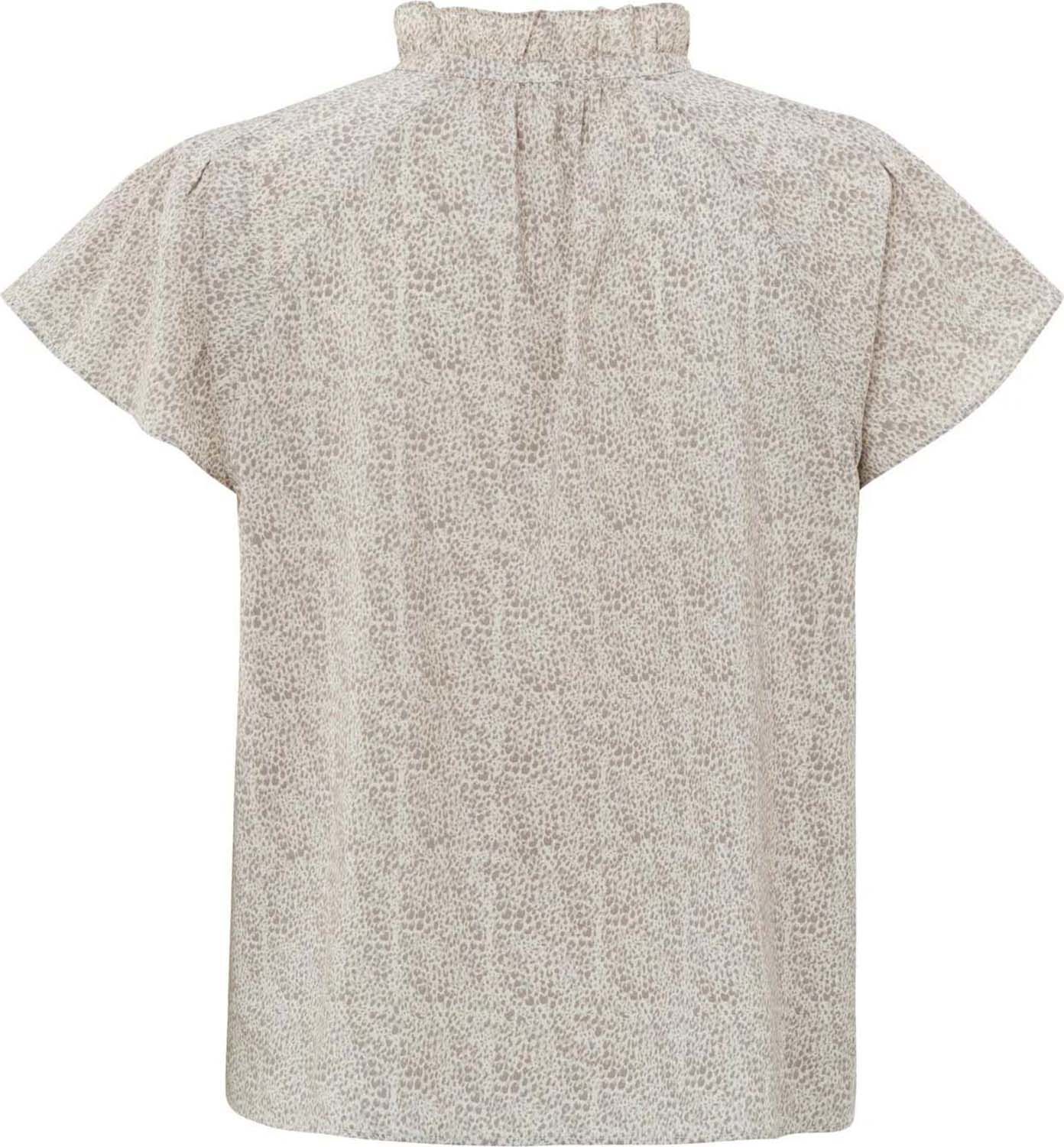 Gedrukte top met ruches bij de hals. Deze modieuze en verfijnde top is perfect voor een chique en vrouwelijke uitstraling.