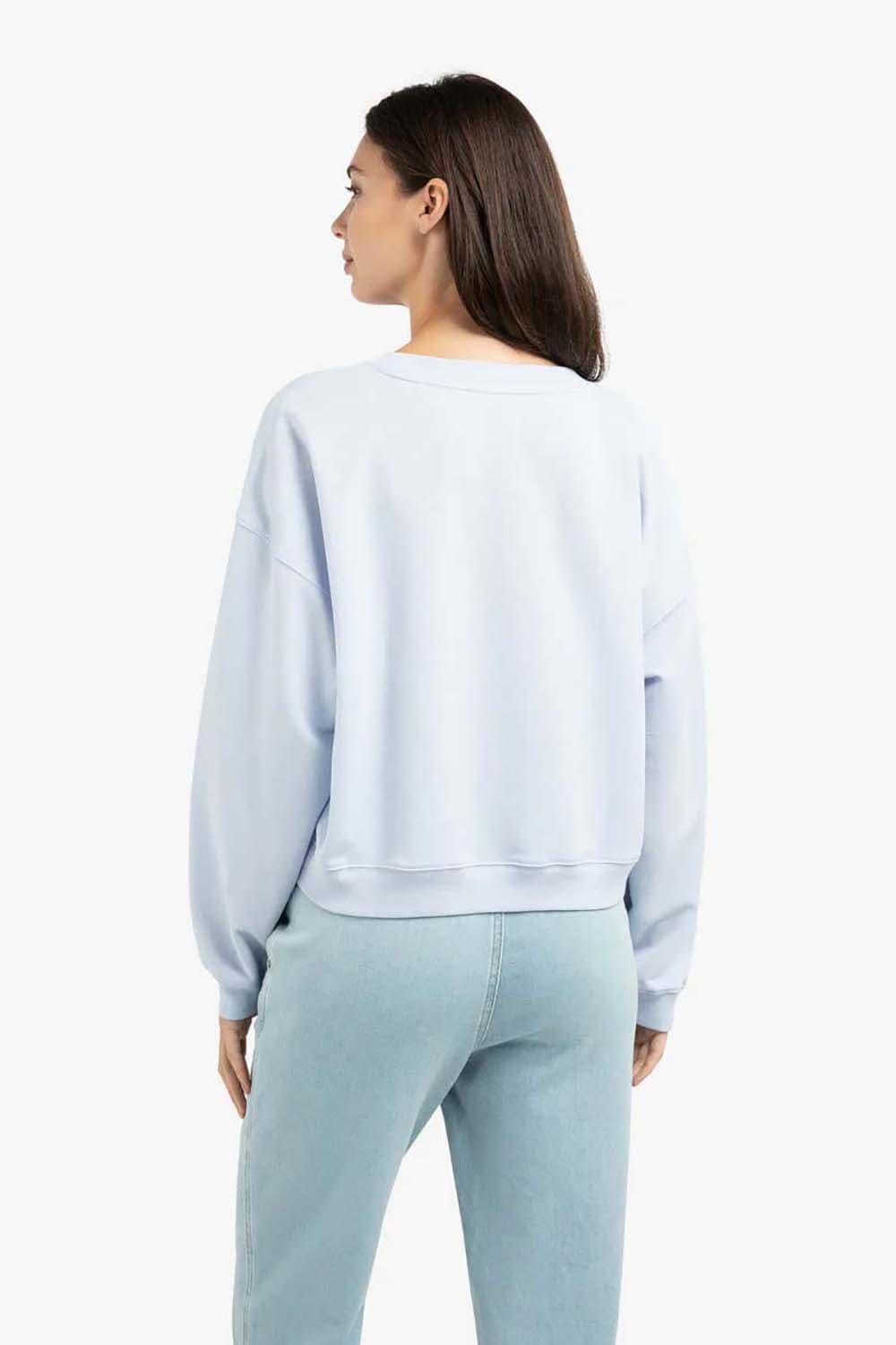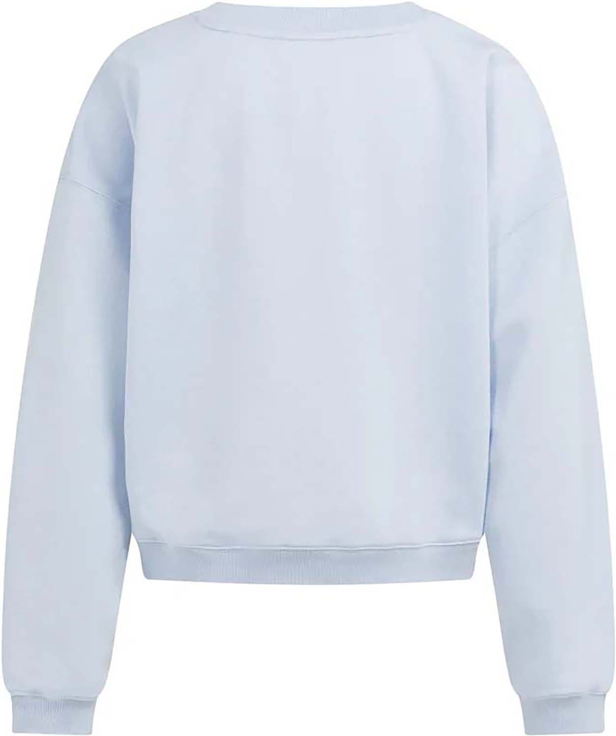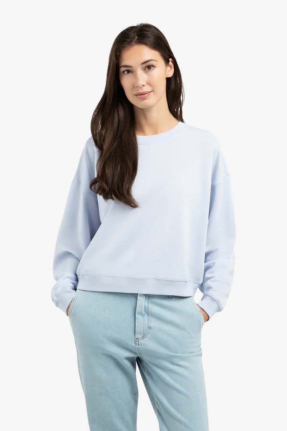 Sweater van Yaya in lichtblauw, casual en effen. De ronde hals, lange mouwen met ribgebreide boorden en de oversized pasvorm met verlaagde schoudernaden geven een ontspannen silhouet. De brede zoom zorgt voor een nette afwerking. Combineer met een lichte jeans voor een rustige set.