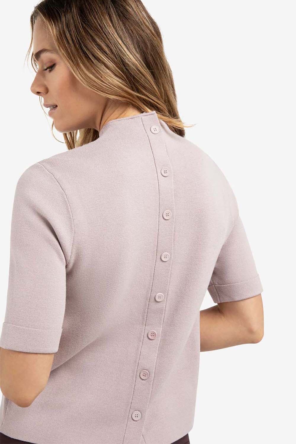 De Yaya sweater is een stijlvolle dames trui met een verfijnde uitstraling. Het heeft een opstaande kraag en korte mouwen, en biedt een regular pasvorm voor ultiem comfort. De knoopsluiting aan de achterkant voegt een uniek element toe aan het effen ontwerp.