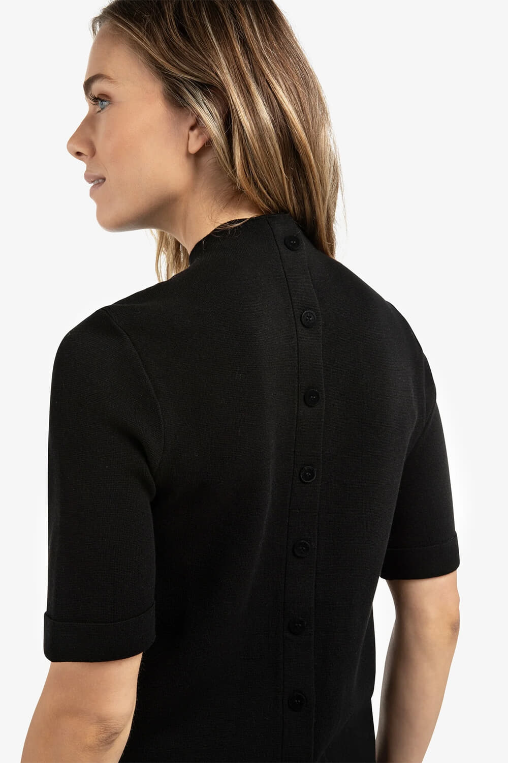 De Yaya sweater is een stijlvolle dames trui met een verfijnde uitstraling. Het heeft een opstaande kraag en korte mouwen, en biedt een regular pasvorm voor ultiem comfort. De knoopsluiting aan de achterkant voegt een uniek element toe aan het effen ontwerp.