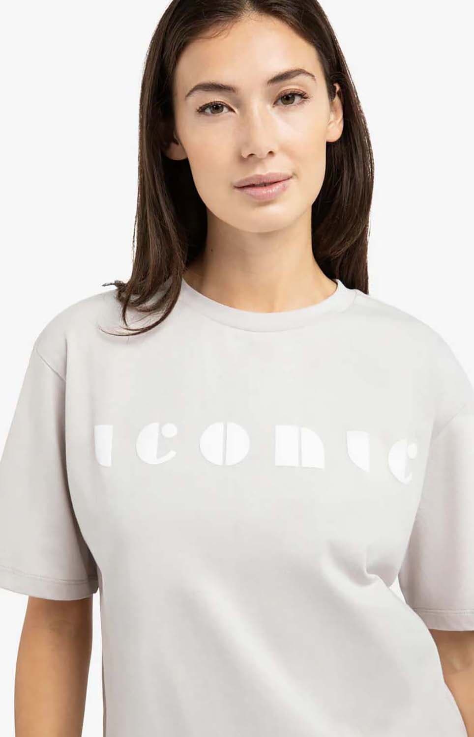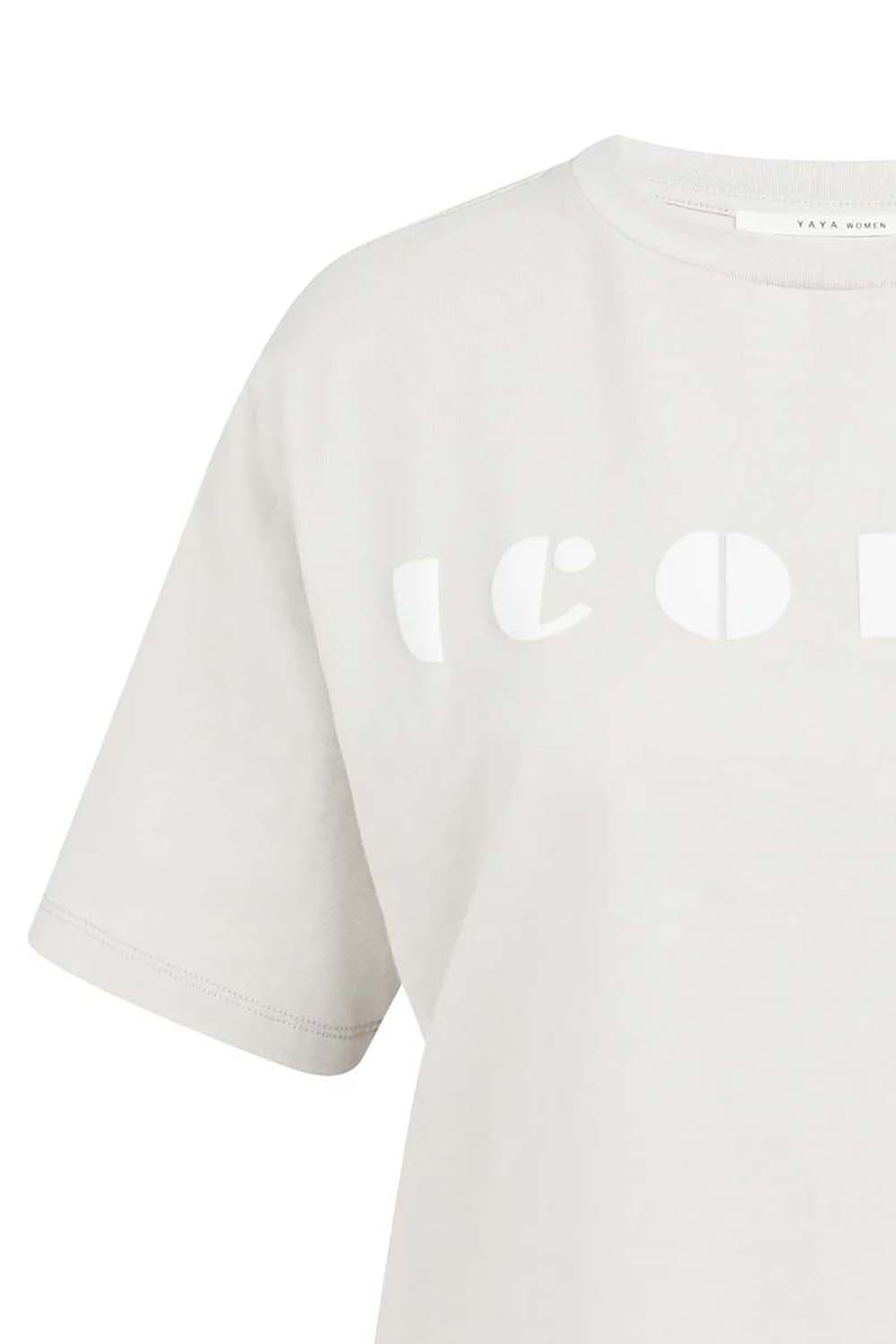 T-shirt van Yaya met ronde hals, korte mouwen en minimalistische, casual uitstraling. De rechte, iets ruimere pasvorm valt soepel en voelt prettig aan. Op de borst staat een contrasterende logoprint met het woord Iconic. Combineer met een jeans of een nette broek voor een rustige, moderne set.