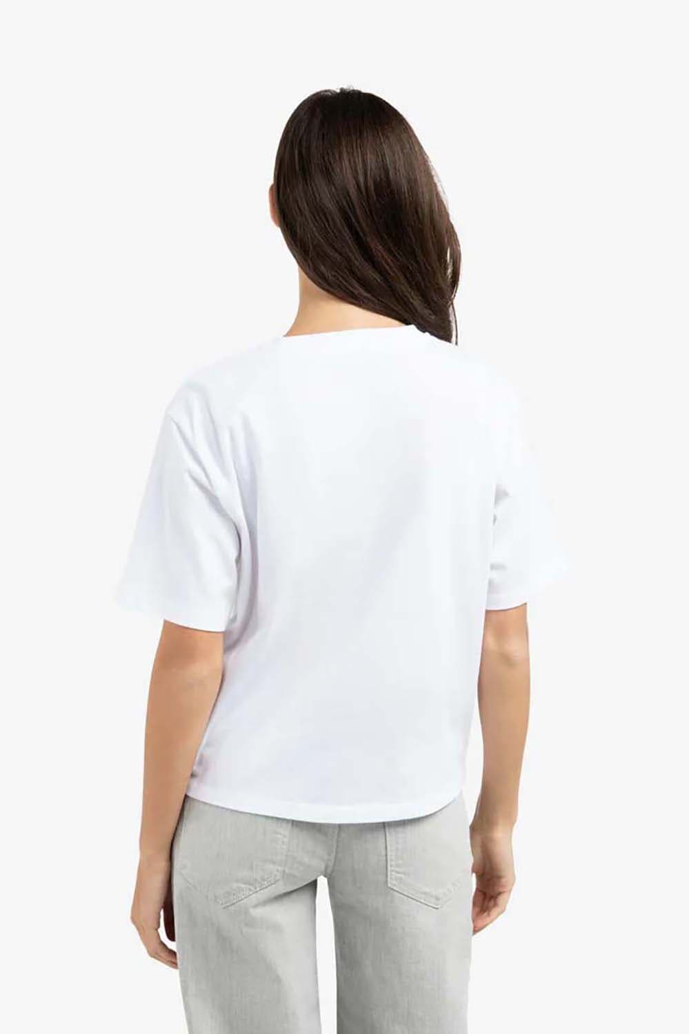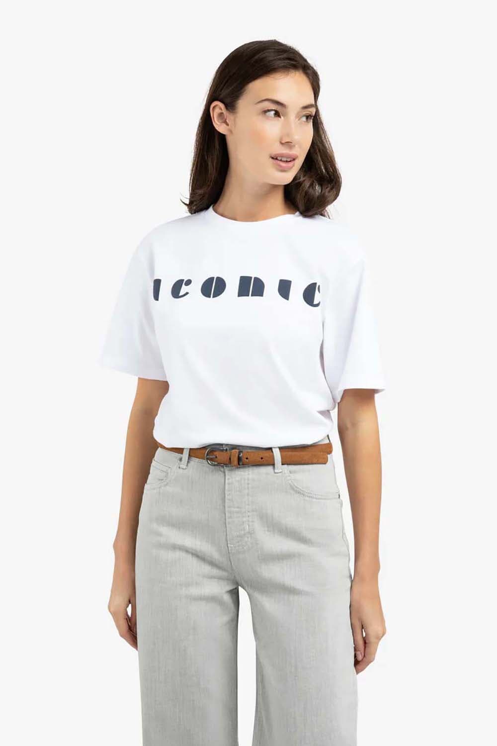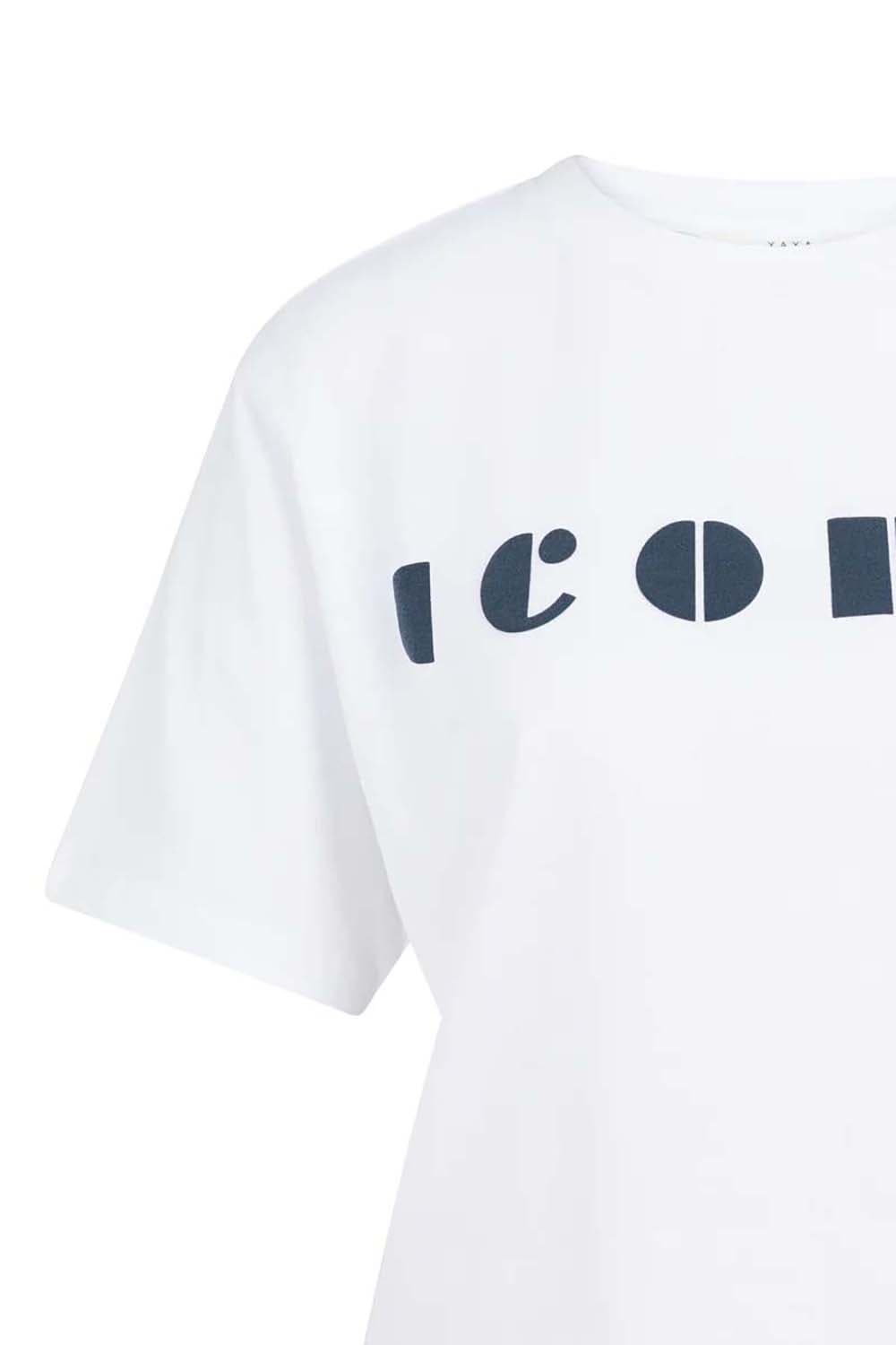 T-shirt van Yaya met ronde hals, korte mouwen en minimalistische, casual uitstraling. De rechte, iets ruimere pasvorm valt soepel en voelt prettig aan. Op de borst staat een contrasterende logoprint met het woord Iconic. Combineer met een jeans of een nette broek voor een rustige, moderne set.