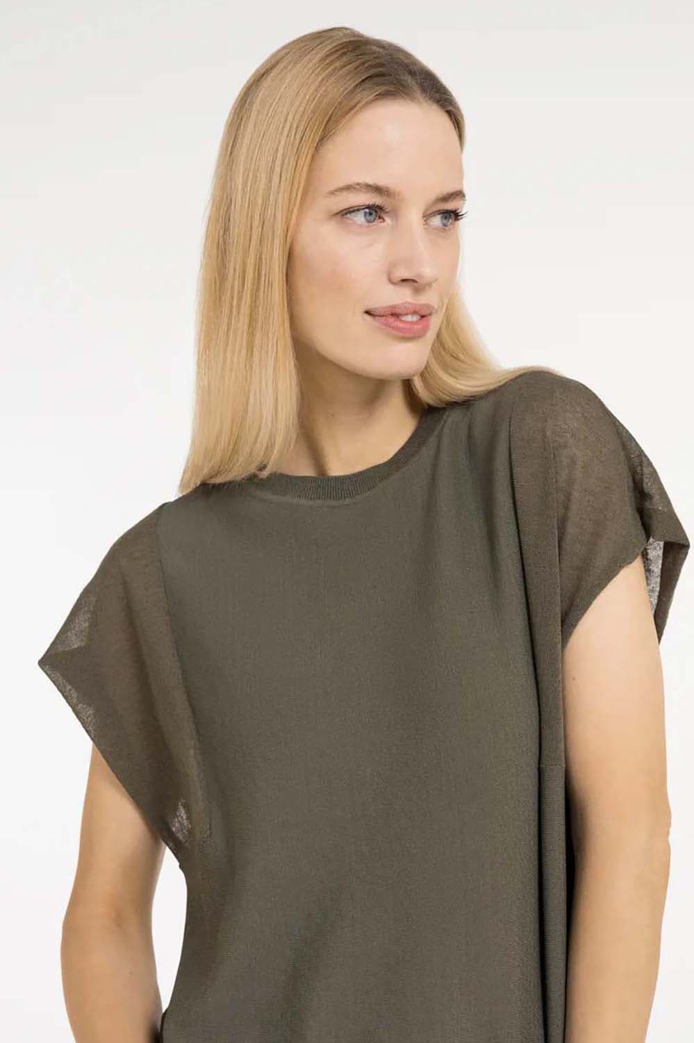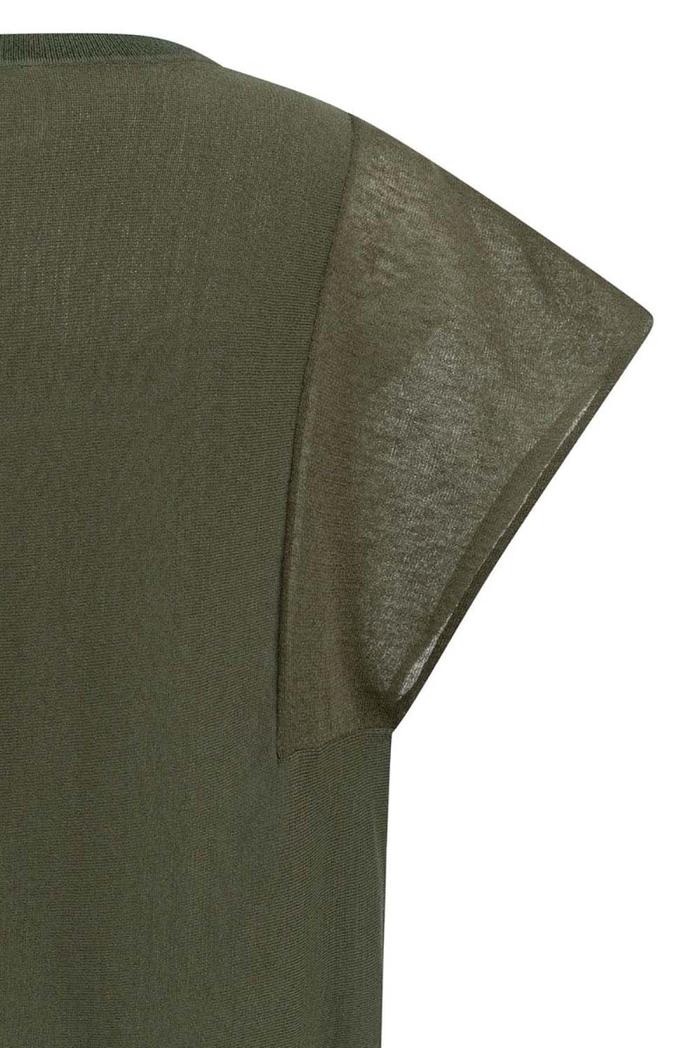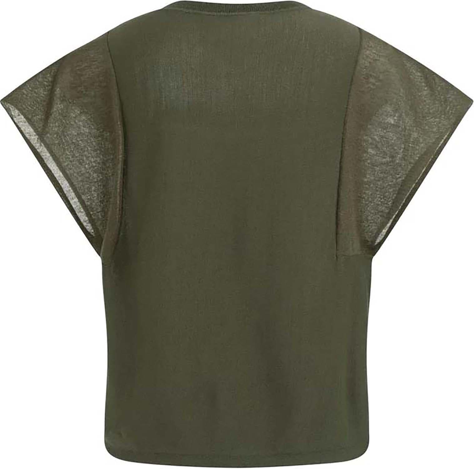 Top van Yaya met ronde hals, korte mouw en effen afwerking. De minimalistische snit heeft brede, licht afhangende schouders en een rechte, relaxte pasvorm met nette boorden. Draagt prettig en valt soepel. Combineer met een jeans of een nette broek voor een rustige basis.