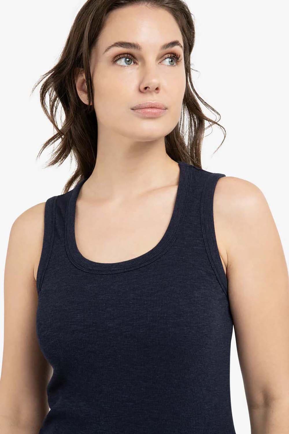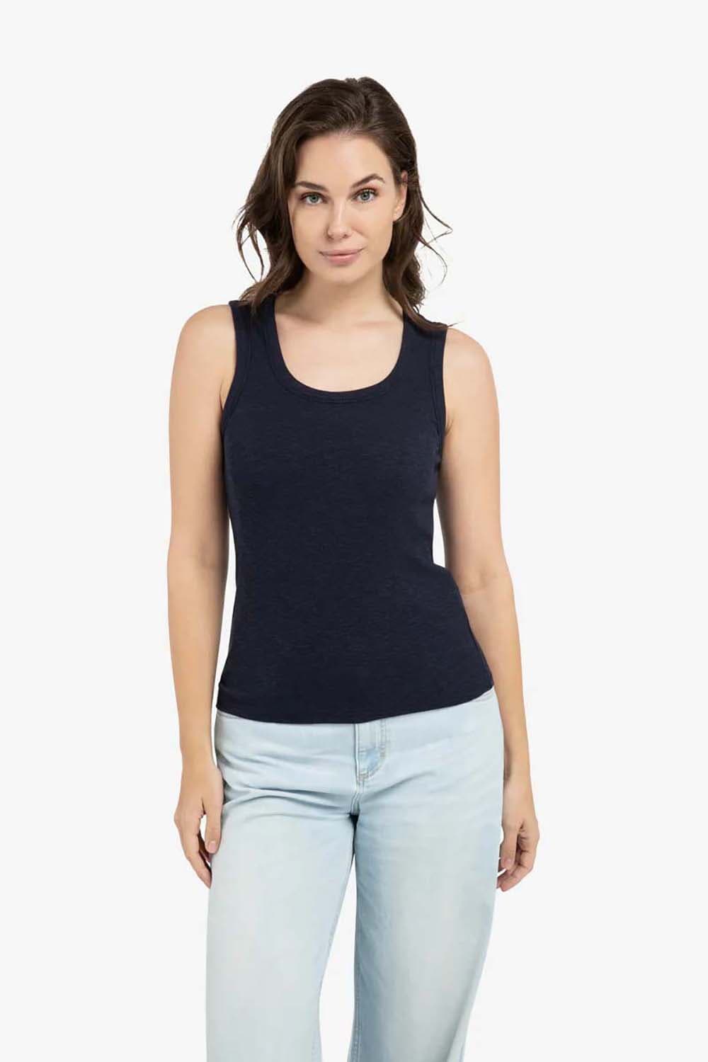 Top van Yaya met ronde hals, mouwloos design en strakke pasvorm. De effen, fijn geribde stof en brede bandjes geven een minimalistische, casual uitstraling. De rechte zoom en naad middenachter zorgen voor een nette afwerking. Combineer met jeans of onder een blazer.