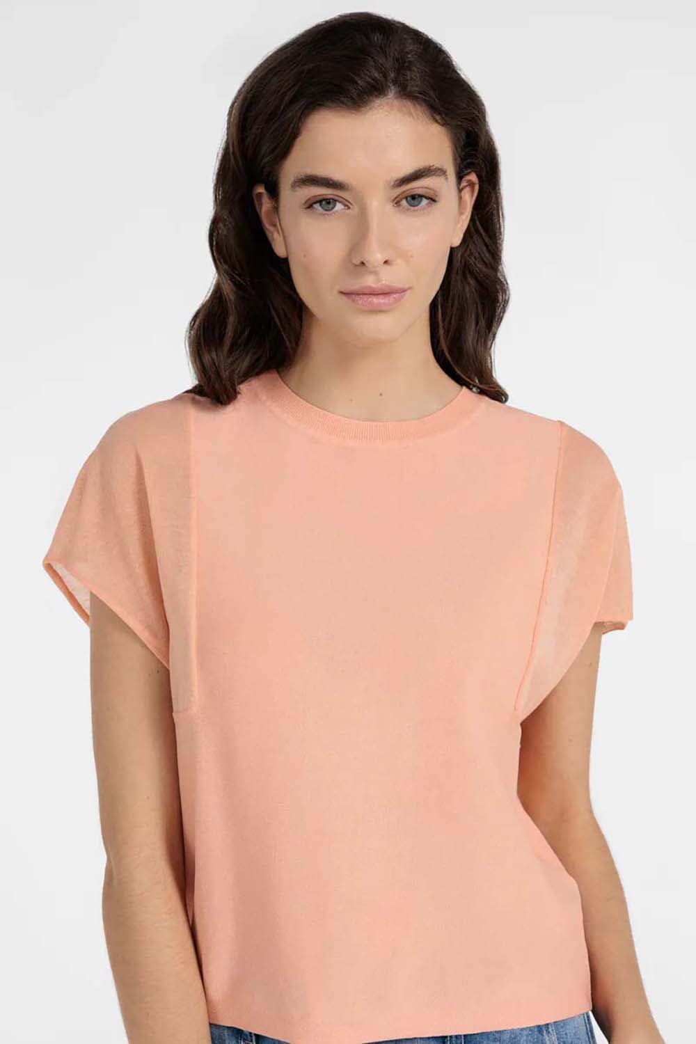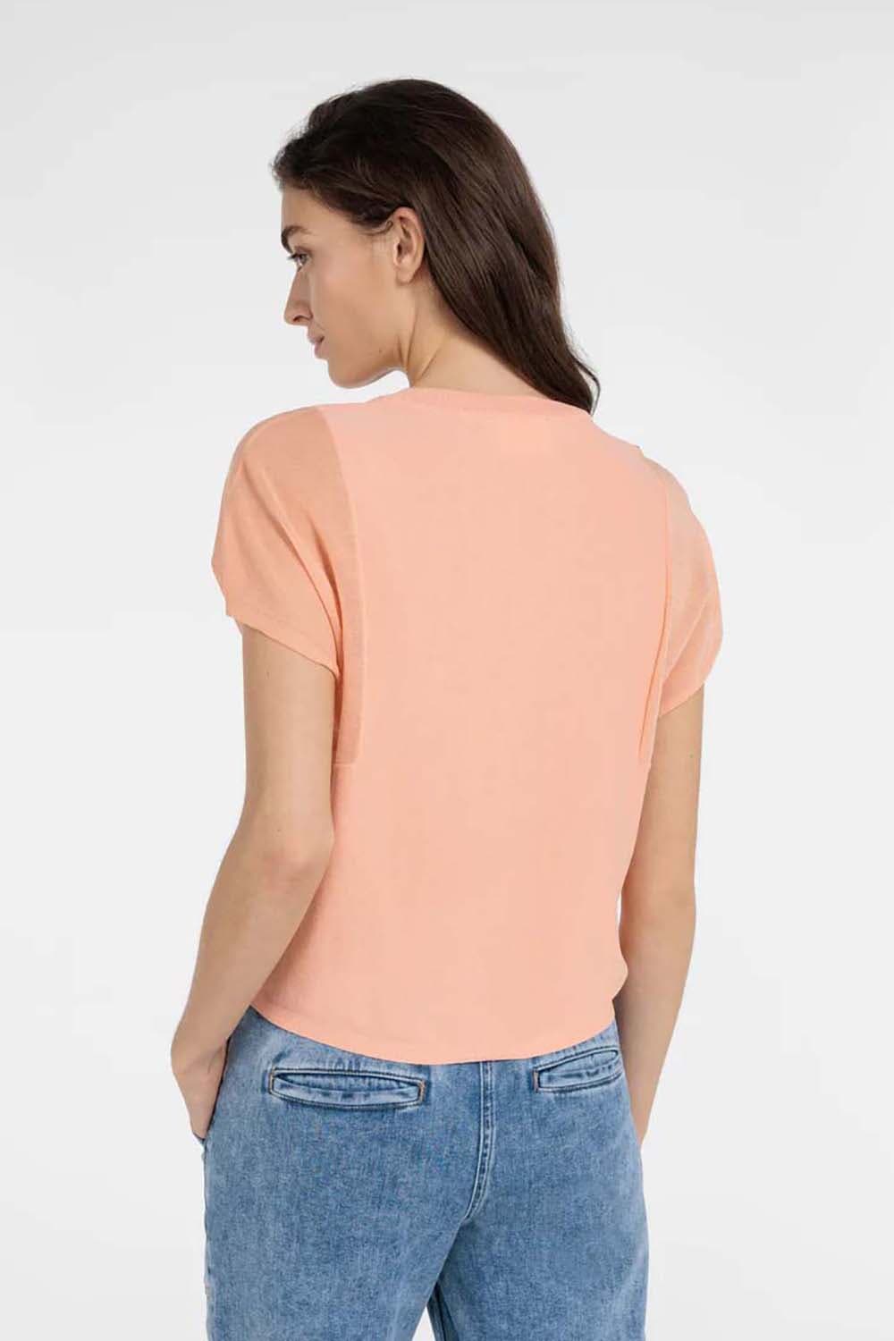 Top van Yaya met ronde hals, korte mouw en effen afwerking. De minimalistische snit heeft brede, licht afhangende schouders en een rechte, relaxte pasvorm met nette boorden. Draagt prettig en valt soepel. Combineer met een jeans of een nette broek voor een rustige basis.