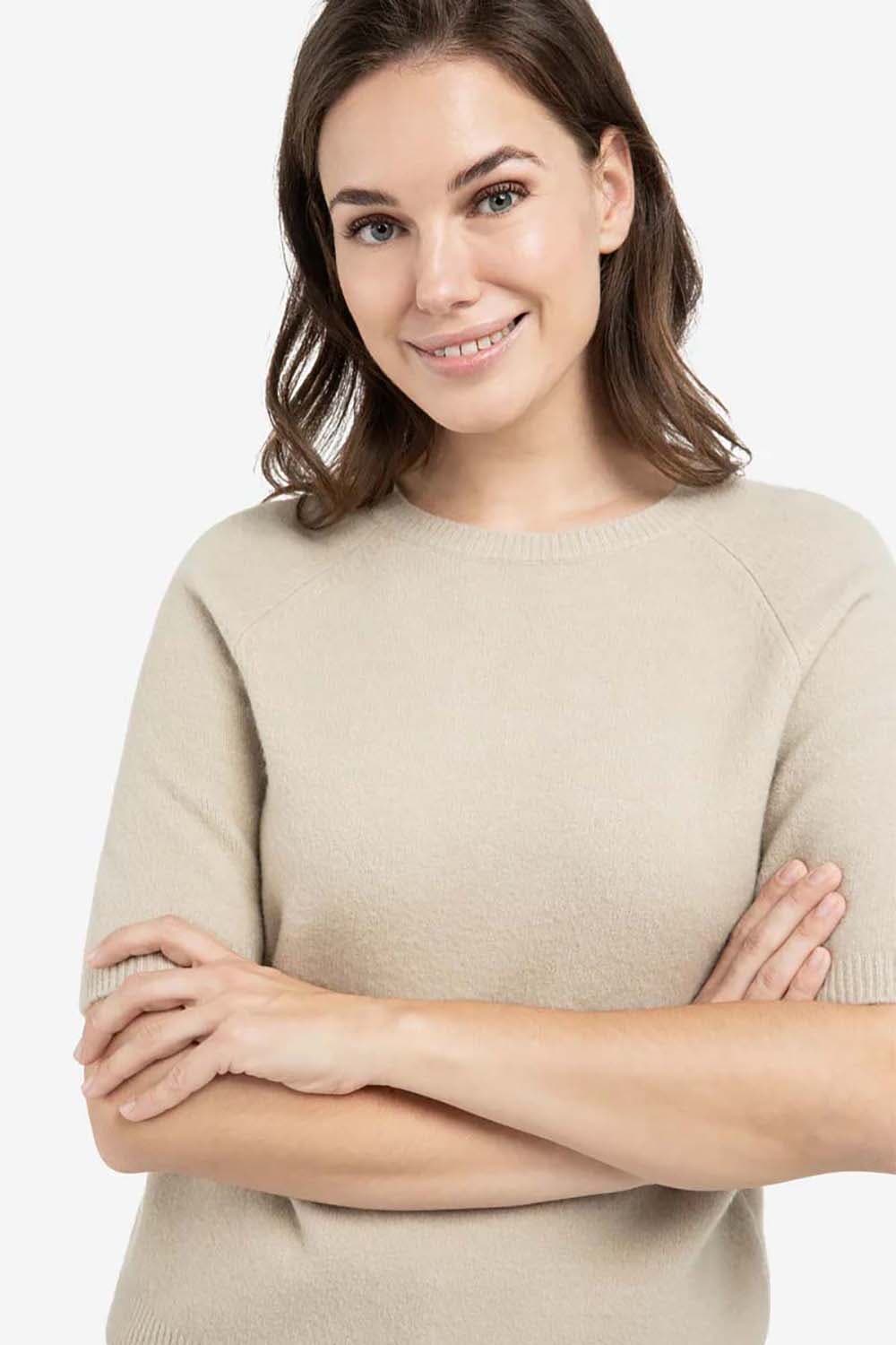De zachte trui met korte mouwen van Yaya is een tijdloze basic. Met een casual stijl en effen patroon is deze trui ideaal voor elke gelegenheid. De korte mouw maakt het perfect voor gelaagde looks. Combineer met een vest voor extra warmte en stijl.