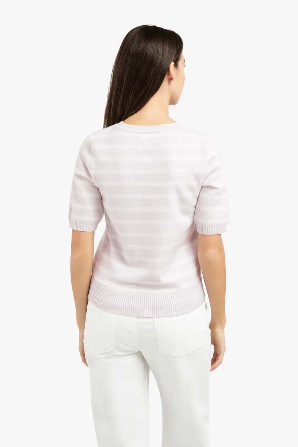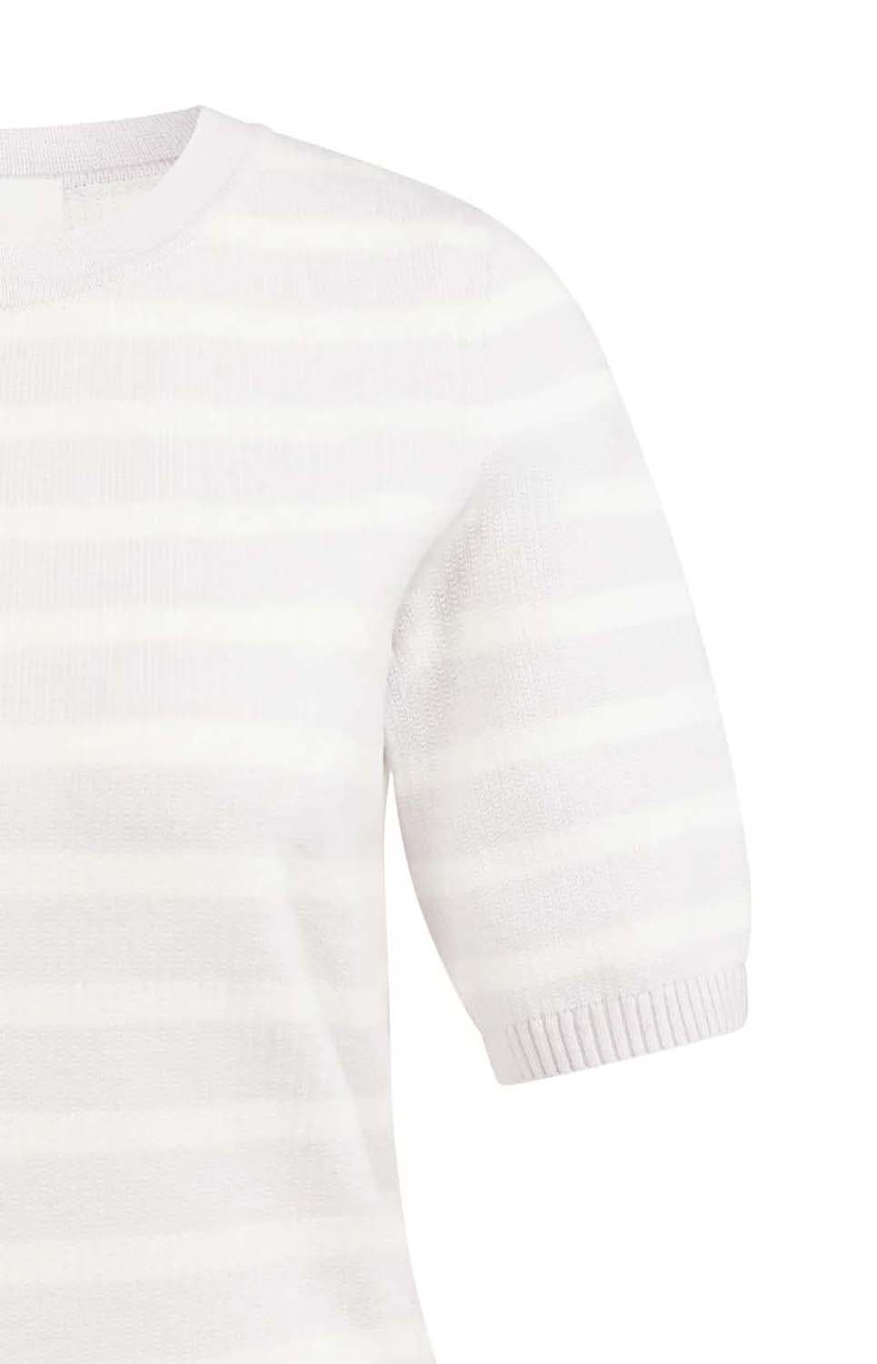 Trui van Yaya met ronde hals, korte mouwen en regular fit. Het minimalistische streeppatroon en de fijngebreide structuur geven een rustige uitstraling. Afgewerkt met ribboorden aan hals, mouwen en zoom voor een nette vorm. Combineer met een jeans of een lichte pantalon.