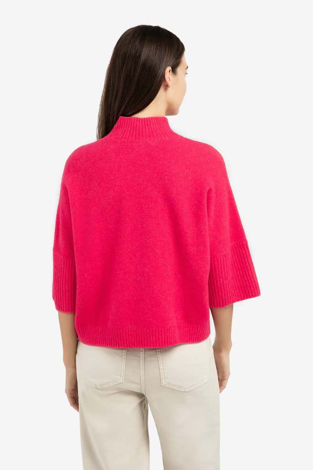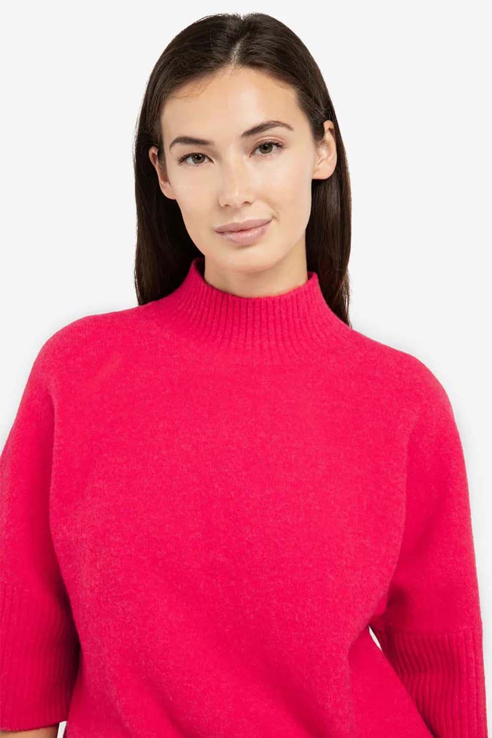 Trui van yaya, een perfecte keuze voor casual gelegenheden. Deze dames trui heeft een boxy fit, 3 kwart mouw met ribgebreide mouwboorden, en een stijlvolle mockneck halslijn. Het effen patroon zorgt voor een tijdloze uitstraling die makkelijk te combineren is.