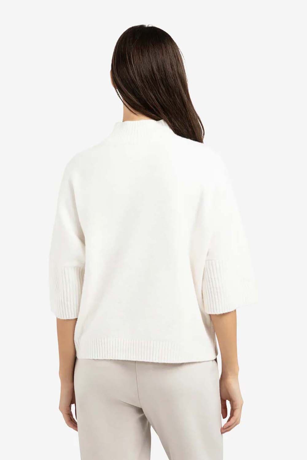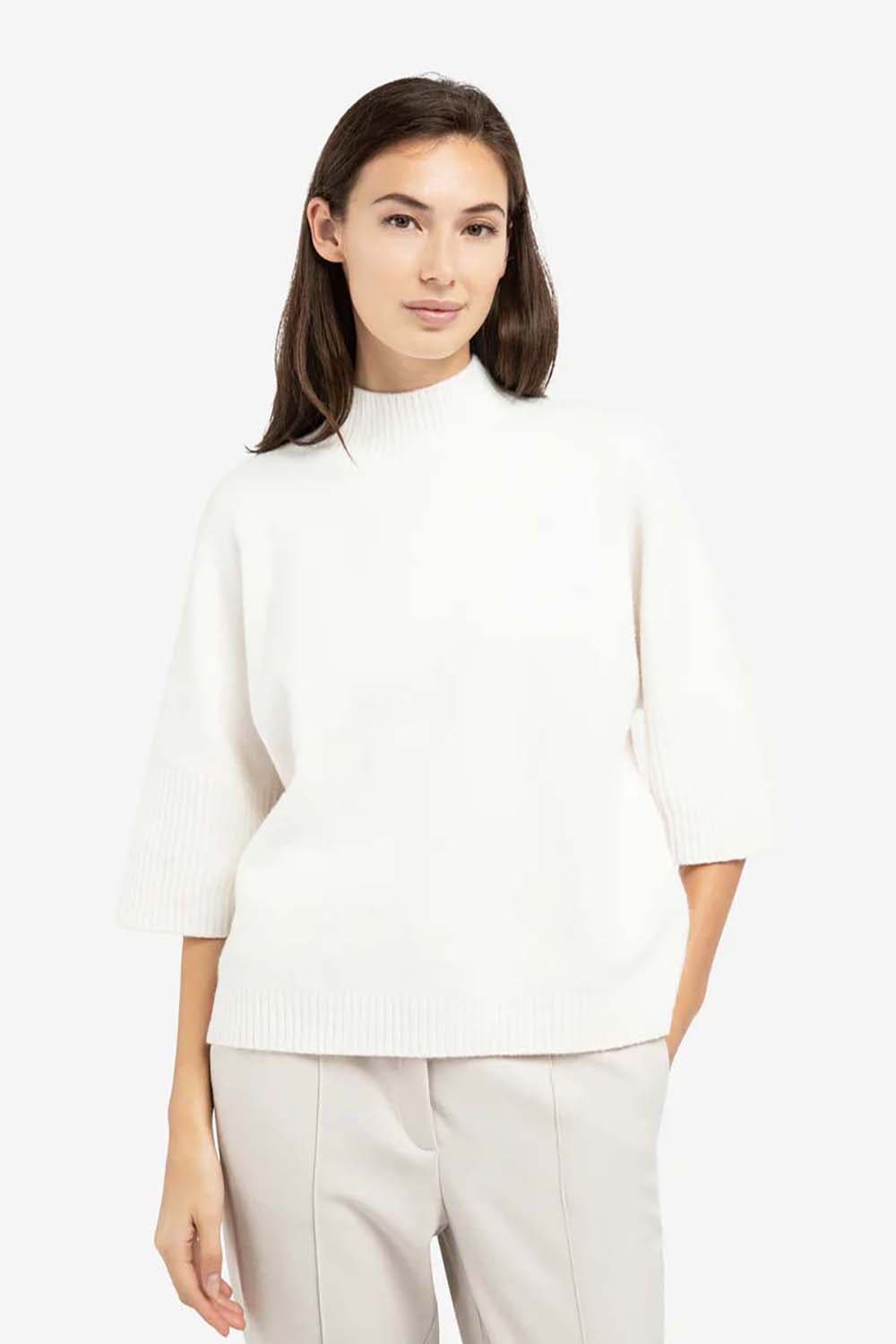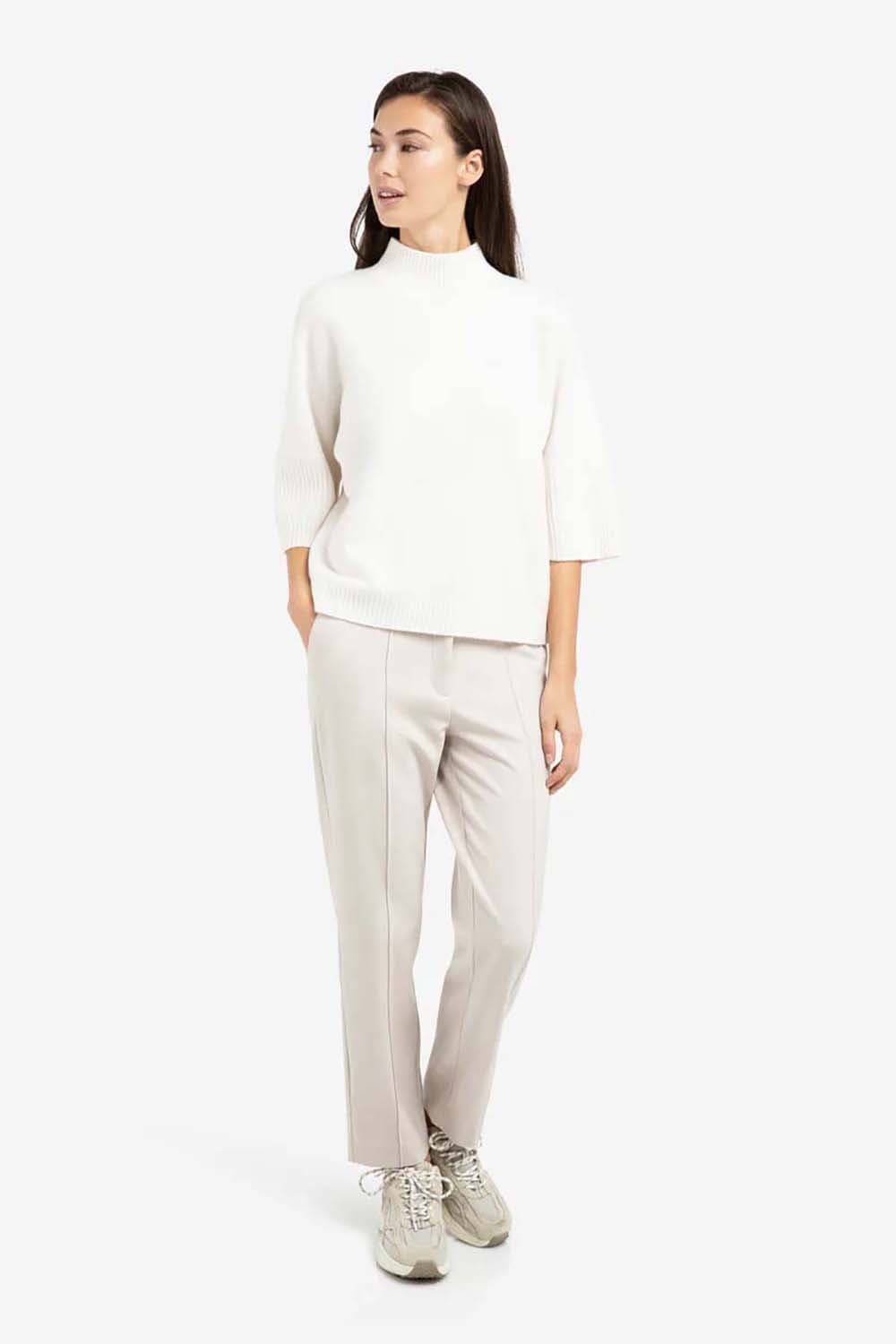 Trui van yaya, een perfecte keuze voor casual gelegenheden. Deze dames trui heeft een boxy fit, 3 kwart mouw met ribgebreide mouwboorden, en een stijlvolle mockneck halslijn. Het effen patroon zorgt voor een tijdloze uitstraling die makkelijk te combineren is.