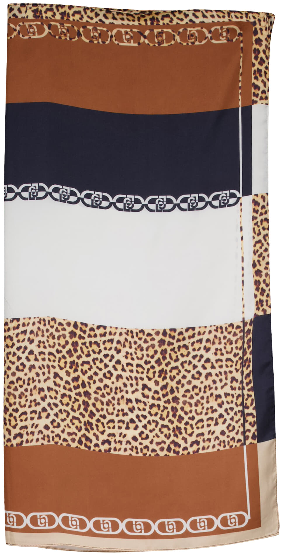 Sjaal van Zo met panterprint en grafisch blokpatroon. Het gladde, geweven materiaal valt soepel en voelt licht aan. De vierkante vorm maakt knopen en vouwen eenvoudig, als halsdoek of om een tas. Geschikt voor netjes en trendy combinaties.
