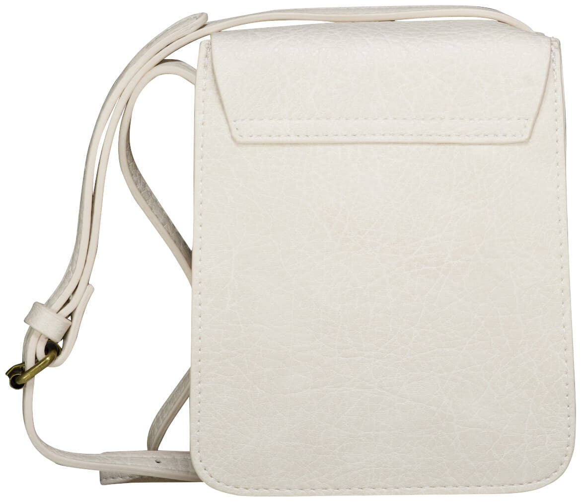 Tas van Zo, dames tas met casual, feminine uitstraling en effen design. Compact crossbody model met verstelbare schouderband, klep met ringdetail, en subtiele sierstiksels. De licht glanzende, leerlook finish en het smalle formaat maken het handig voor telefoon, pasjes en sleutels.