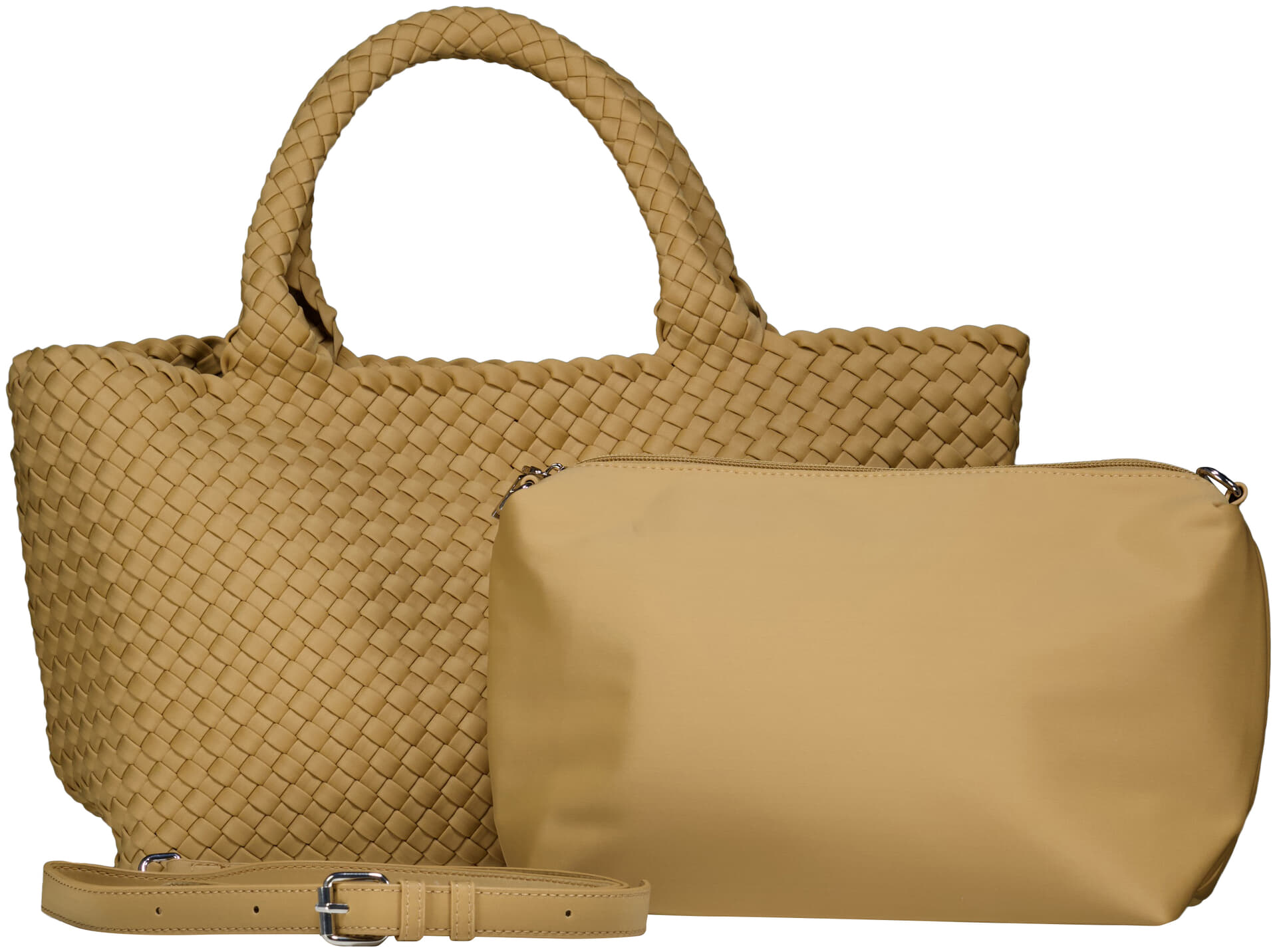 Tas Zo is een tas met all over, klassiek geweven structuur en gevlochten handgrepen. Het ruime, open model draagt comfortabel in de hand en biedt plek voor dagelijkse essentials. Past bij casual en bohemian outfits. Combineer met een luchtige blouse, jeans en sandalen.