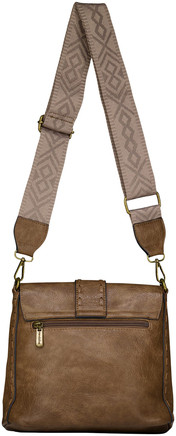 Deze tas van Zo combineert minimalisme met een grafisch patroon. De verstelbare schouderband biedt comfort, terwijl de bruine kleur veelzijdigheid toevoegt aan elke outfit. Een ideaal accessoire voor dagelijks gebruik, dat stijl en functionaliteit moeiteloos samenbrengt.