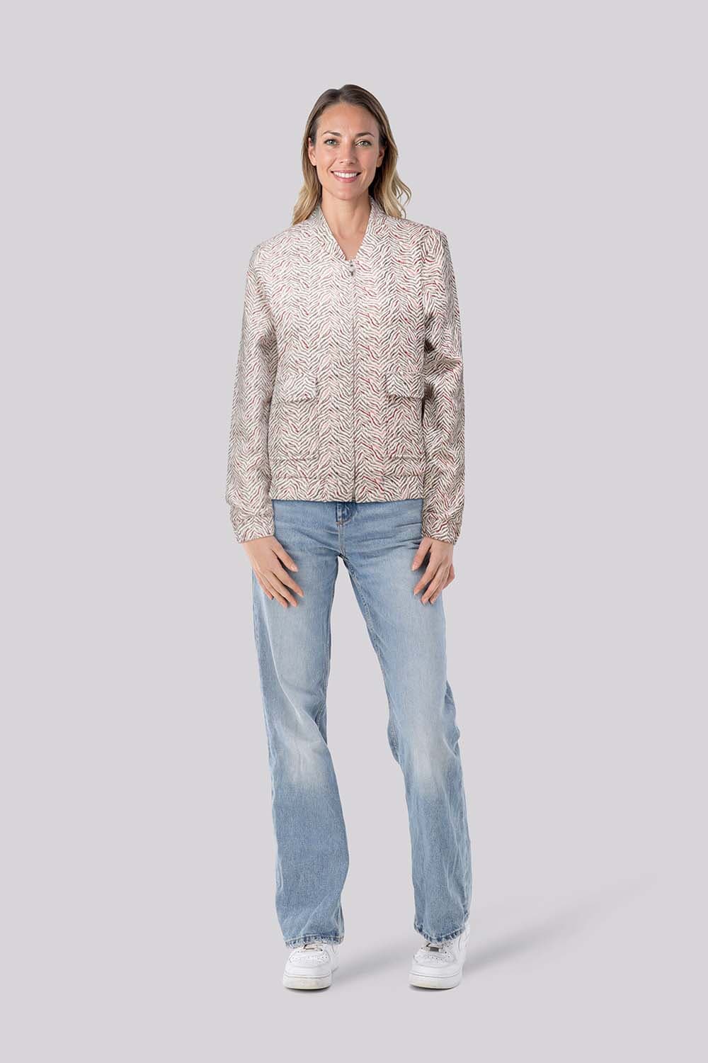 Blazer Denia van Zoso is een blazer met bomberjas-uitstraling, opstaande kraag, opstaand boord en rits. De regular pasvorm en lange mouwen dragen comfortabel, terwijl de dierenprint en zakken op de voorzijde praktisch blijven. Combineer met een effen top en jeans voor een casual set.