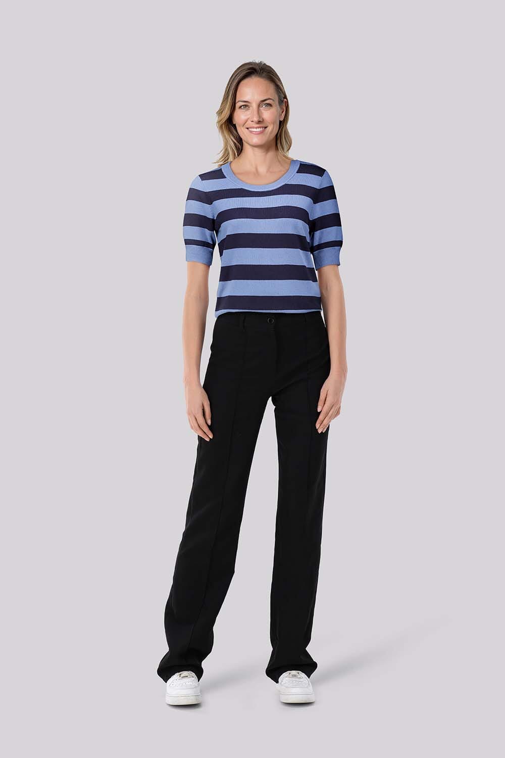De Top Cloe van Zoso is een casual dames top korte mouw met een ronde halslijn. Het regular fit ontwerp heeft een streep patroon en korte mouwen, wat het ideaal maakt voor een ontspannen gelegenheid. De hoogwaardige materialen zorgen voor comfort en stijl.