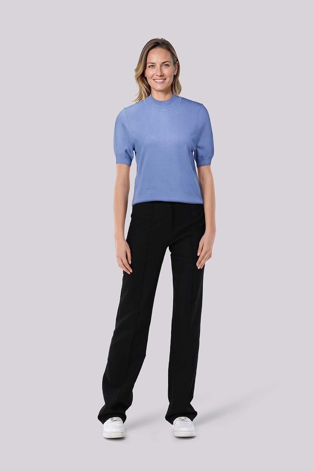 De Top Marnix van ZOSO is een minimalistische dames top met een opstaande kraag en korte mouwen. Deze regular fit top heeft een effen patroon en is voorzien van ribgebreide mouwboorden. Perfect voor casual gelegenheden, biedt het comfort en stijl in één.