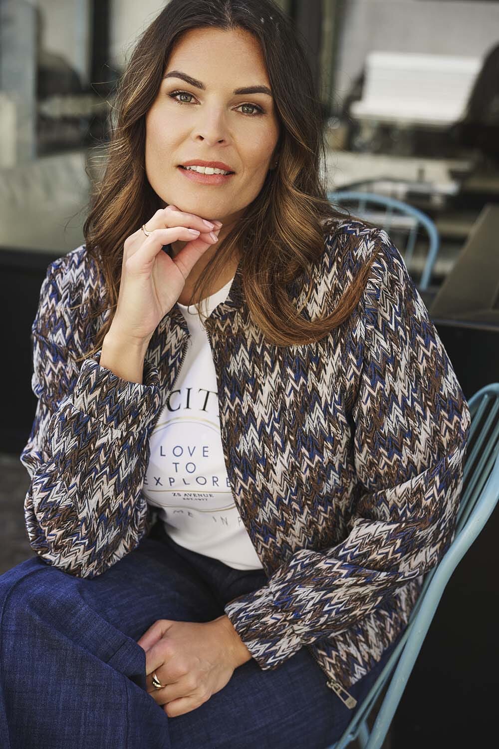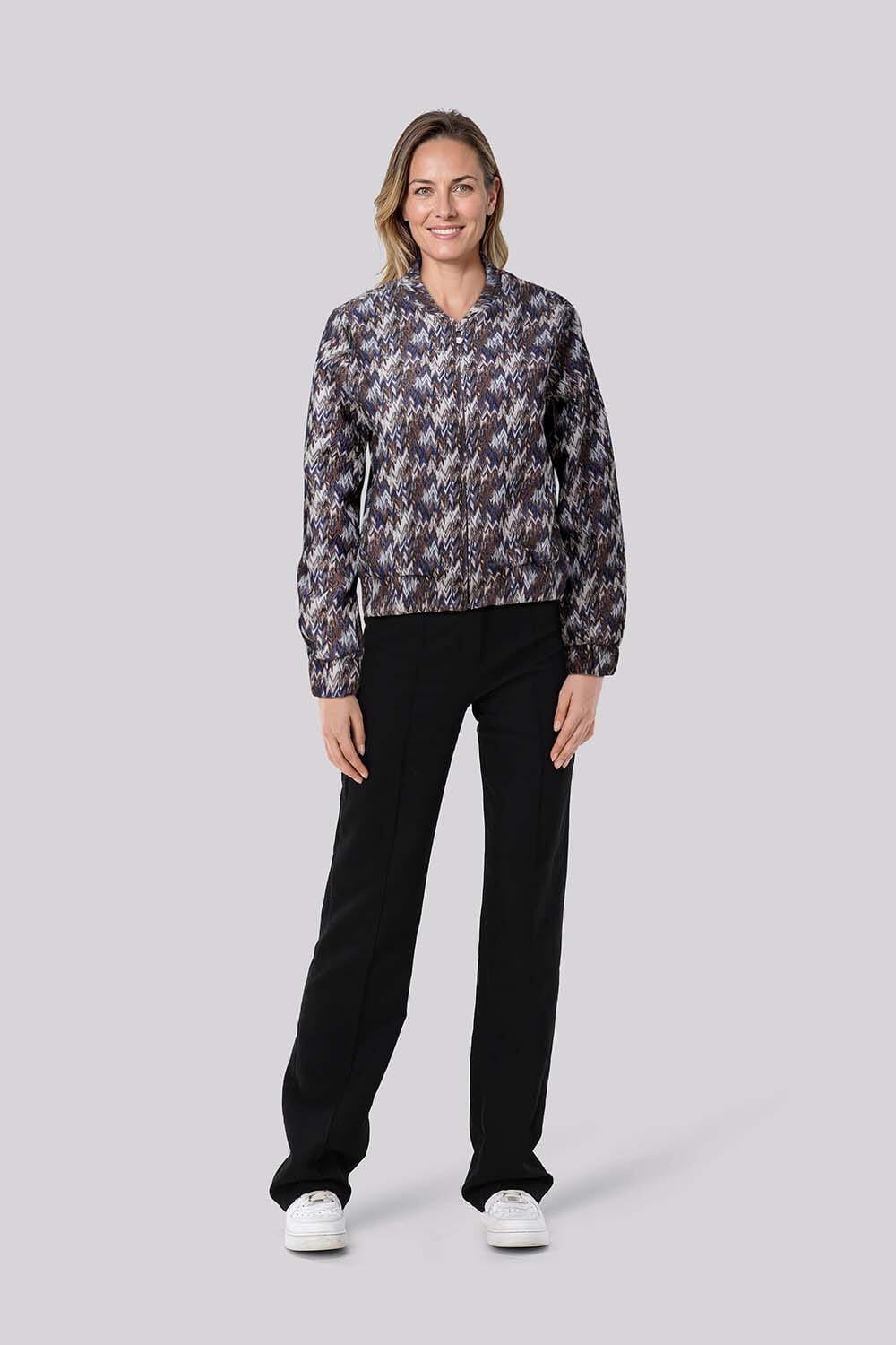 Vest Sonja van Zoso is een dames vest met een trendy grafisch patroon. Dit vest heeft een opstaande kraag, een ritssluiting en een cropped fit, ideaal voor een modieuze uitstraling. De lange mouwen maken het perfect voor verschillende gelegenheden.