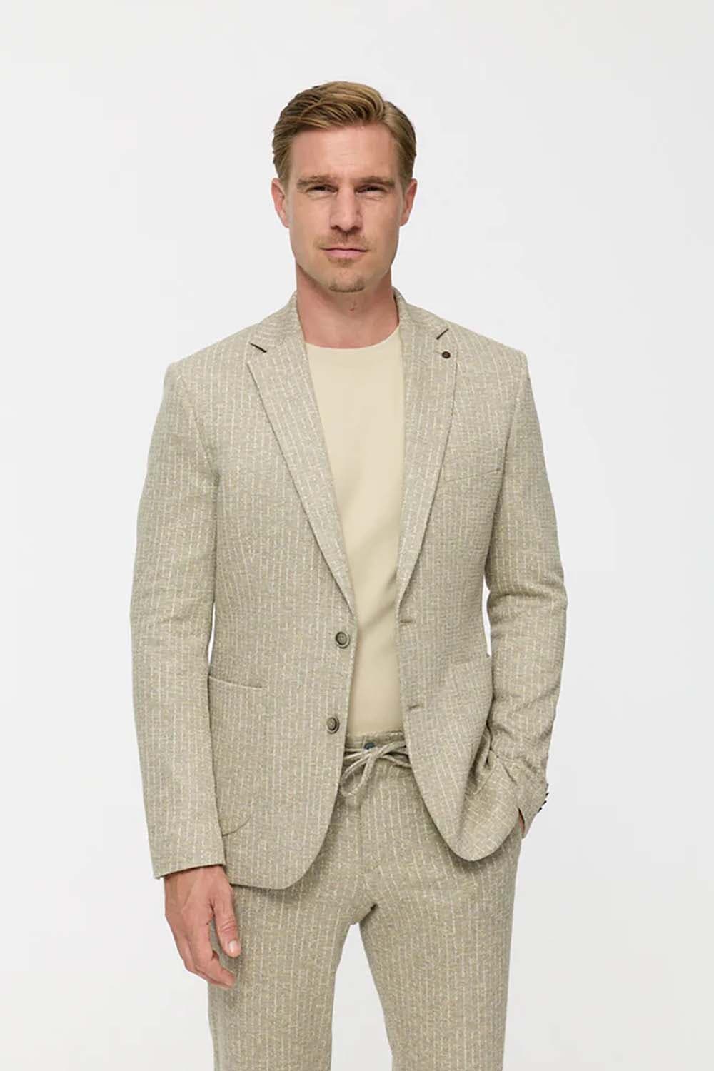 De Blazer Dinick van Zuitable is een stijlvolle heren blazer met een opstaande kraag en reverskraag. Het ontwerp heeft een regular fit, lange mouwen en een effen patroon. Voorzien van voorzakken en knoopsluiting, is deze tussenjas perfect voor een nette gelegenheid.