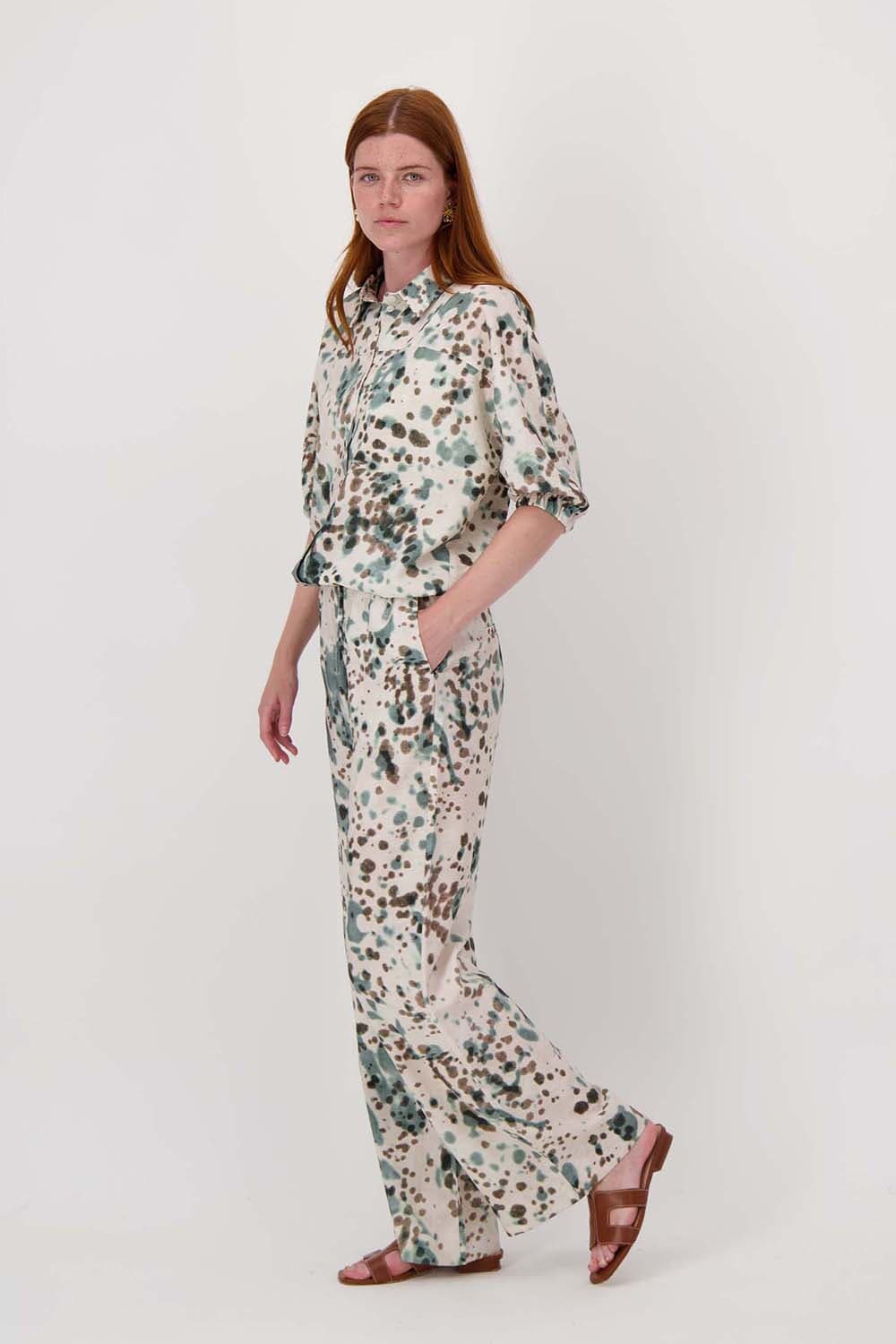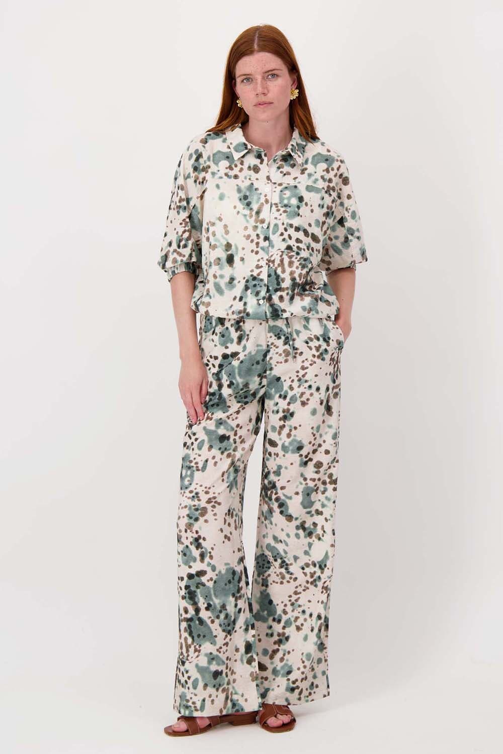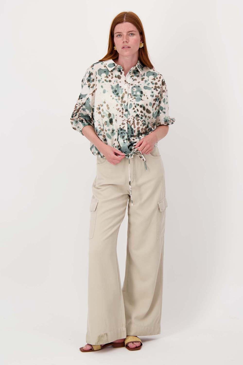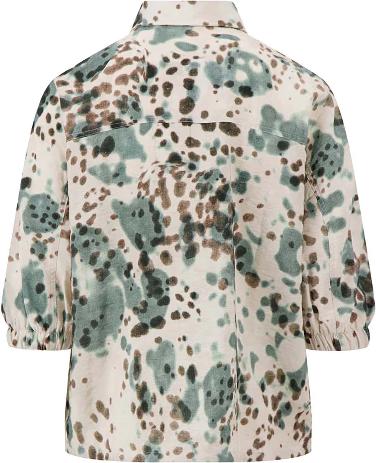 Blouse van Zusss is een casual overhemd met spreidkraag, knoopsluiting en regular pasvorm. Het all-over vlekkenpatroon en de borstzakken geven een speelse touch. De 3/4 mouwen hebben manchetten met elastiek. Trek de koordzoom licht aan voor extra vorm.