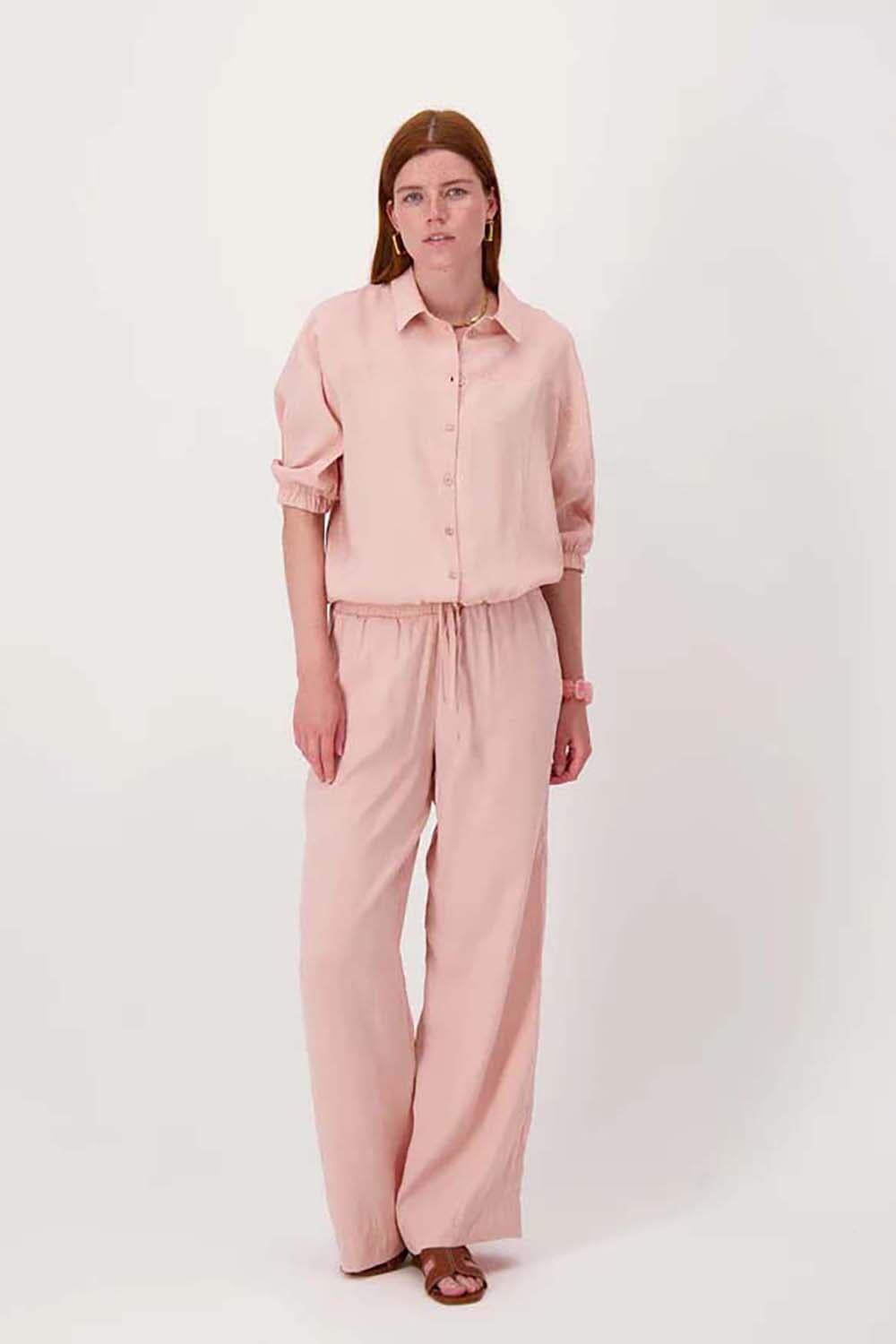 Blouse dames blouse van Zusss is een casual overhemd in effen lichtroze, met spreidkraag, knoopsluiting en overhemdkraag halslijn. De boxy fit valt ruim en recht, terwijl de 3 kwart mouwen met brede omslag zorgen voor een ontspannen draaggevoel, geschikt voor alledaagse momenten.