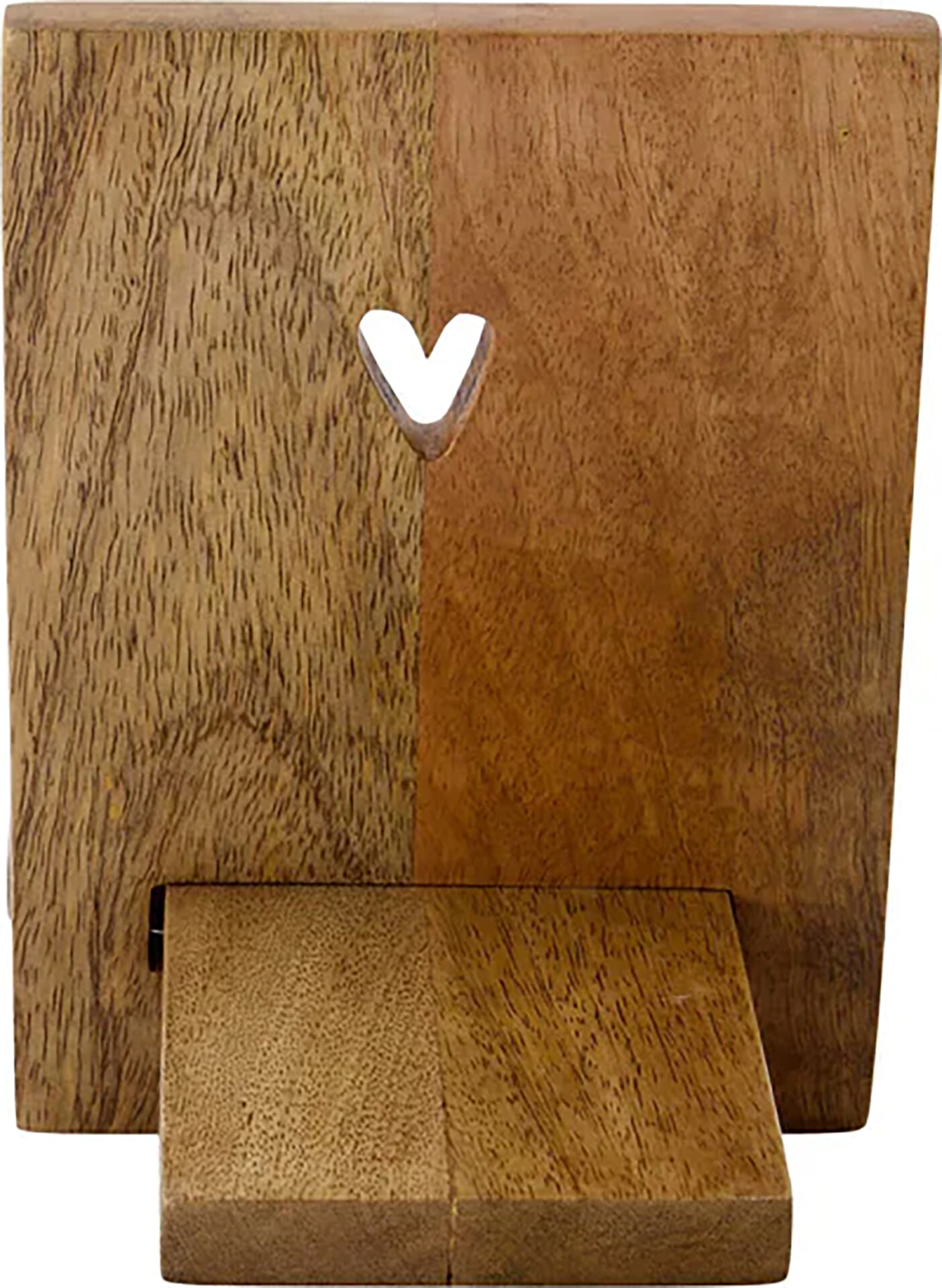 Breng rust in je ruimte met deze minimalistische houten standaard. Het tweekleurige hout en het subtiele hartdetail geven een moderne, verfijnde uitstraling zonder te overheersen. Ideaal om je telefoon of tablet netjes rechtop te plaatsen tijdens videobellen, koken of werken. De stevige voet zorgt voor stabiliteit, terwijl het compacte ontwerp je bureau of aanrecht opgeruimd houdt. Een tijdloos accessoire dat warmte en eenvoud combineert.