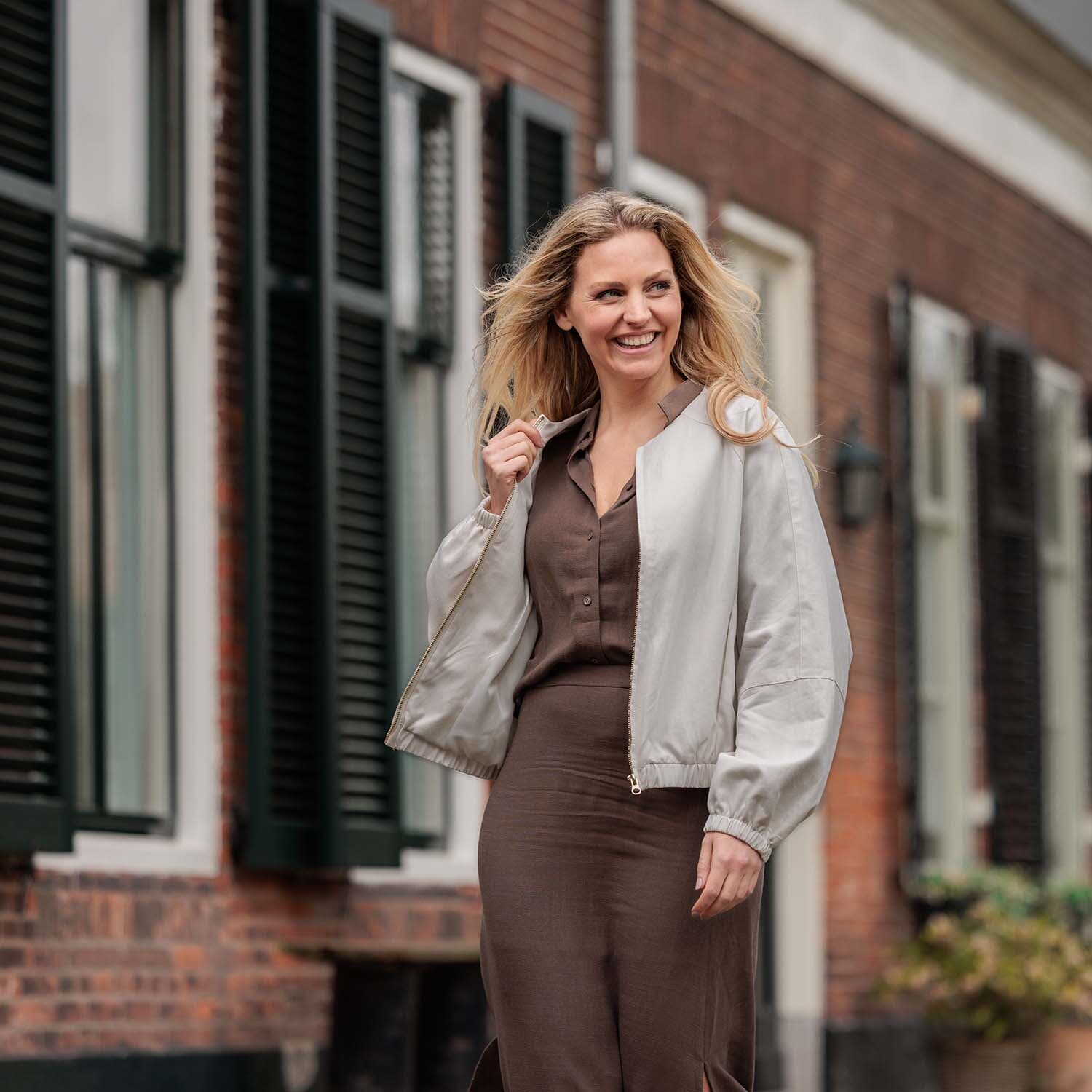 Bomber van Zusss is een effen, minimalistisch model met regular pasvorm. De ronde hals en rits geven een strakke afwerking. Voorzakken bieden praktische ruimte. Lange mouwen met elastische manchetten en een elastische zoom zorgen voor een comfortabele fit. Combineer met jeans en sneakers.