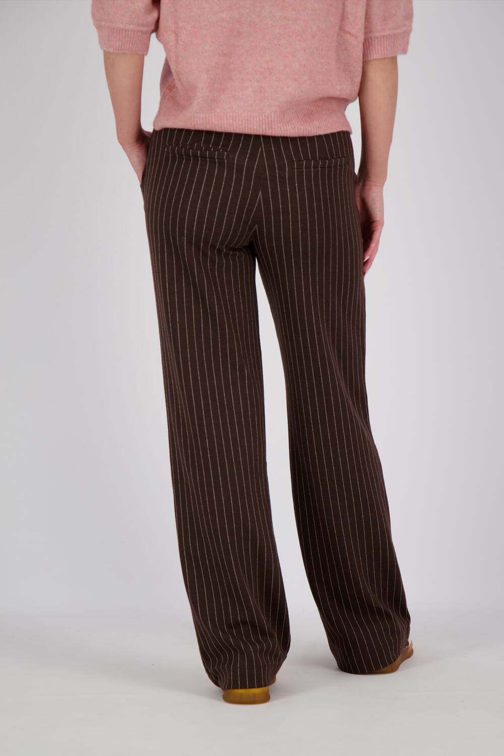 De krijtstreep broek met bandplooi van Zusss is een elegante lange broek met wijde pijpen en een verfijnd streeppatroon. Deze dames lange broek biedt een perfecte mix van stijl en comfort, ideaal voor zowel casual als formele gelegenheden.