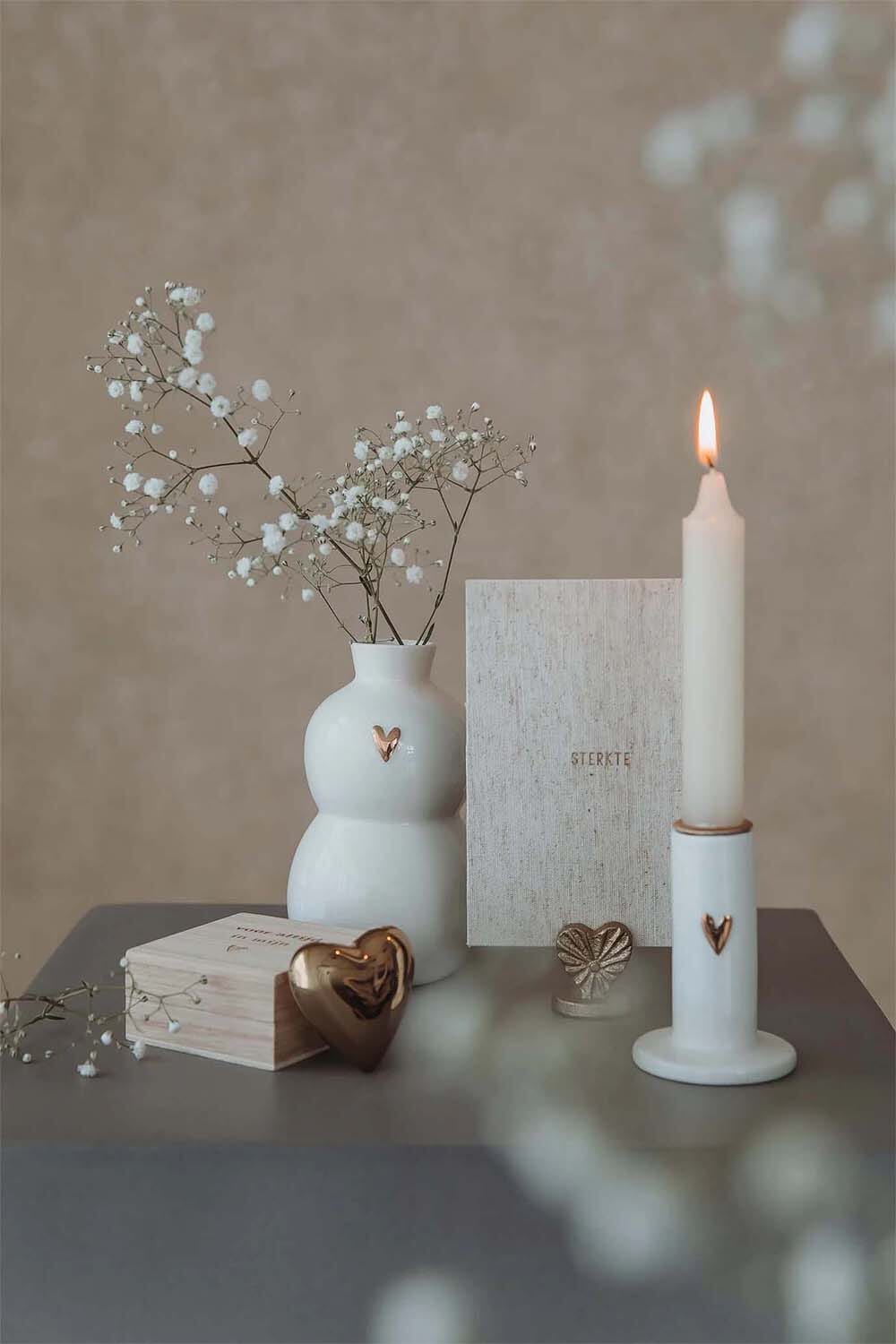 Ontdek de charme van minimalisme met dit prachtige hartvormige decoratiestuk. Gemaakt van hoogwaardig materiaal, straalt het eenvoud en elegantie uit. Het houten doosje voegt een warme, natuurlijke touch toe, perfect voor elk interieur. Een subtiel maar betekenisvol cadeau voor een speciaal iemand, of een verfijnde toevoeging aan uw eigen huis. Dit stuk belichaamt tijdloze schoonheid en verfijning, een blijvende herinnering aan liefde en verbondenheid.