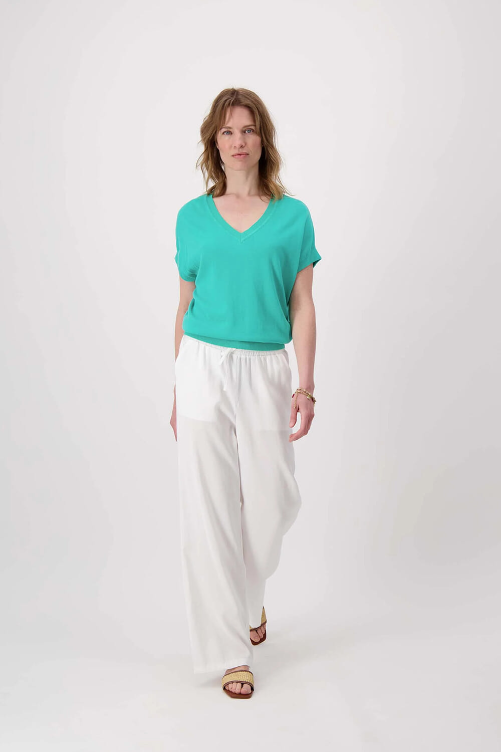 De Fijn Brie Top van Zusss is een casual dames top met korte mouw en een elegante V-hals. Deze effen top biedt een relaxed pasvorm, ideaal voor een ontspannen dag. Het stijlvolle ontwerp en de korte mouwen maken het een veelzijdige toevoeging aan elke garderobe.