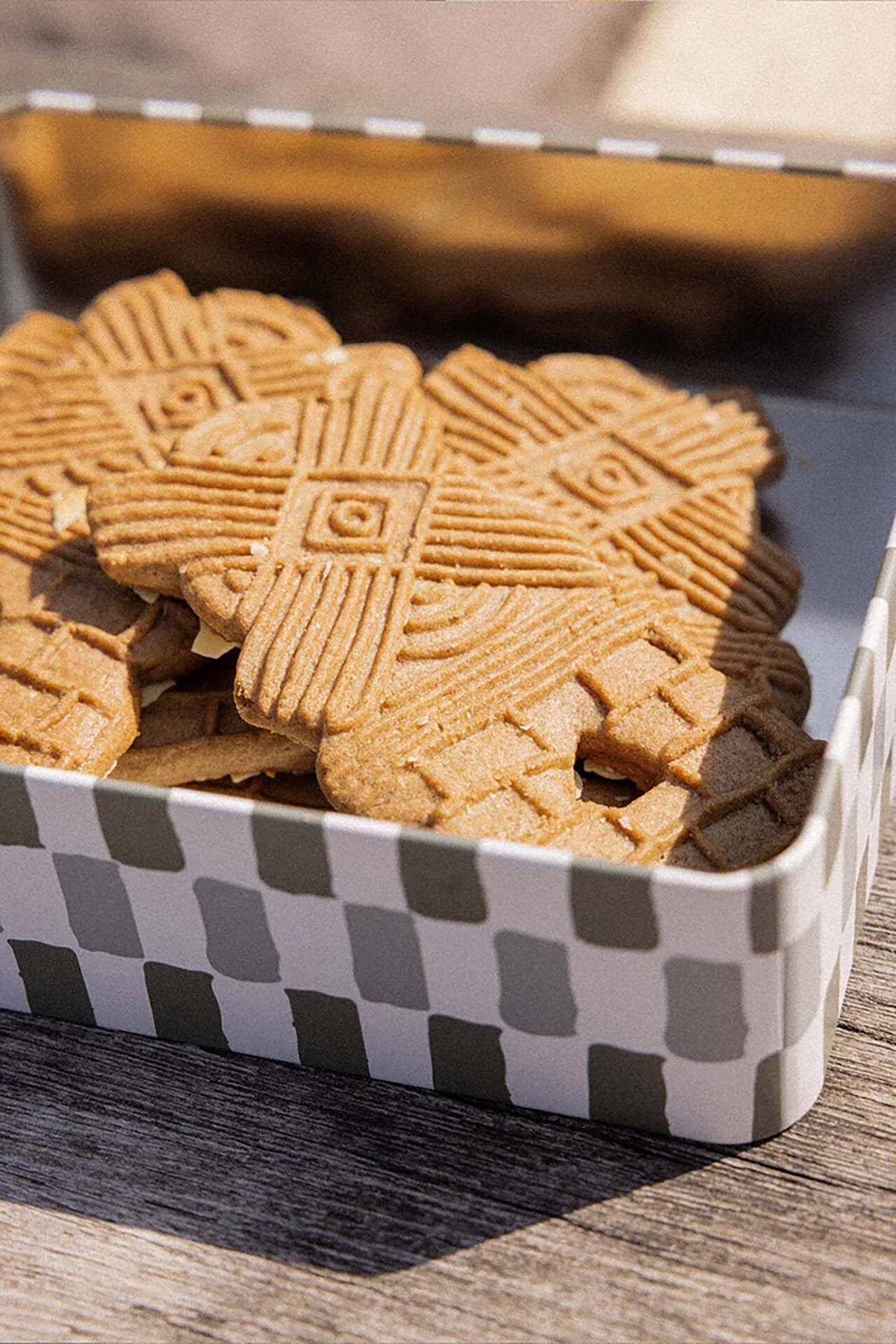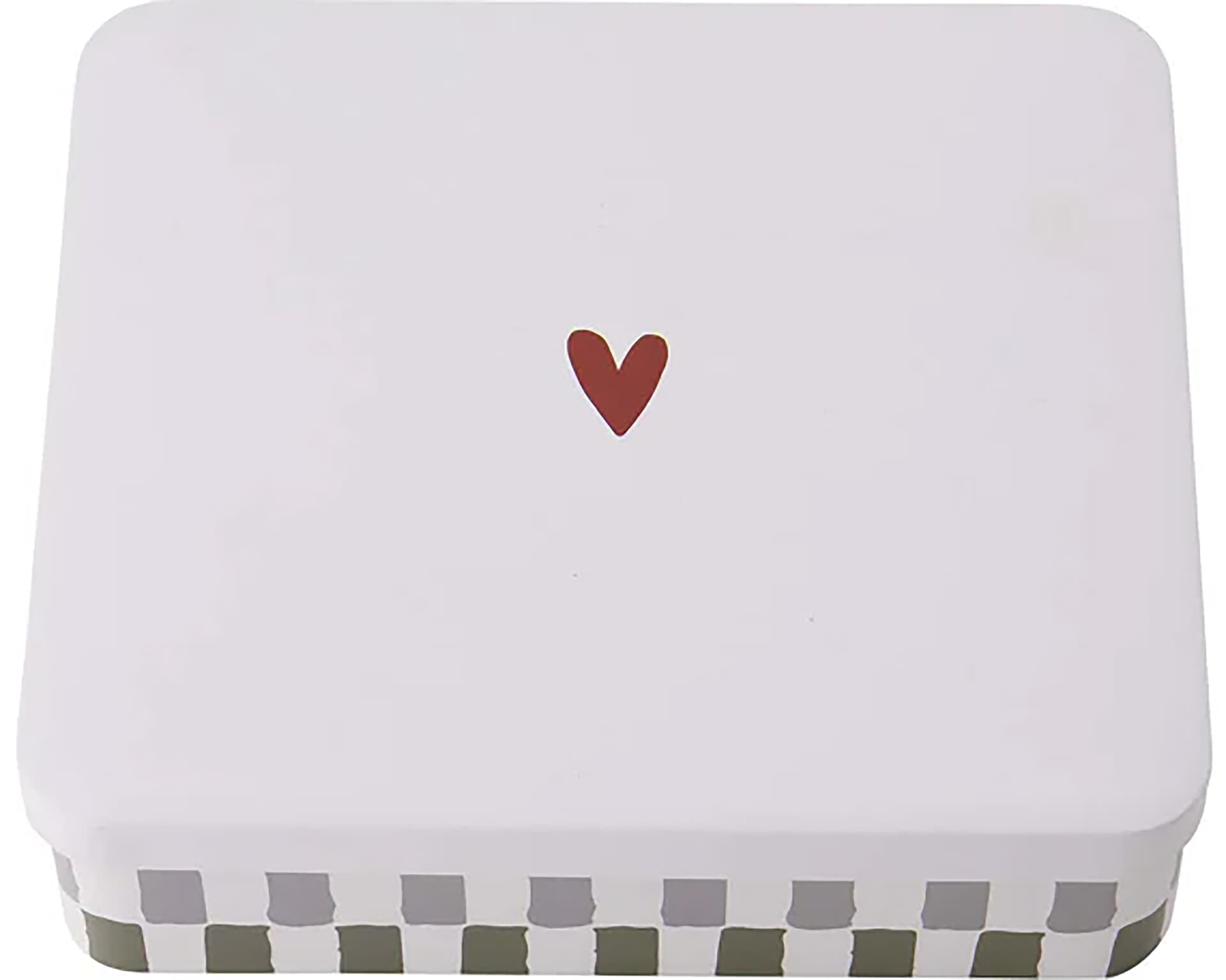 Koekblik hartje rood/grijs/groen van Zusss is een charmant accessoire. Dit blikje, versierd met een speels ruitpatroon en een warm rood hartje, biedt een stijlvolle manier om lekkernijen te bewaren. Perfect voor elke tafelsetting en een leuk cadeau-idee.