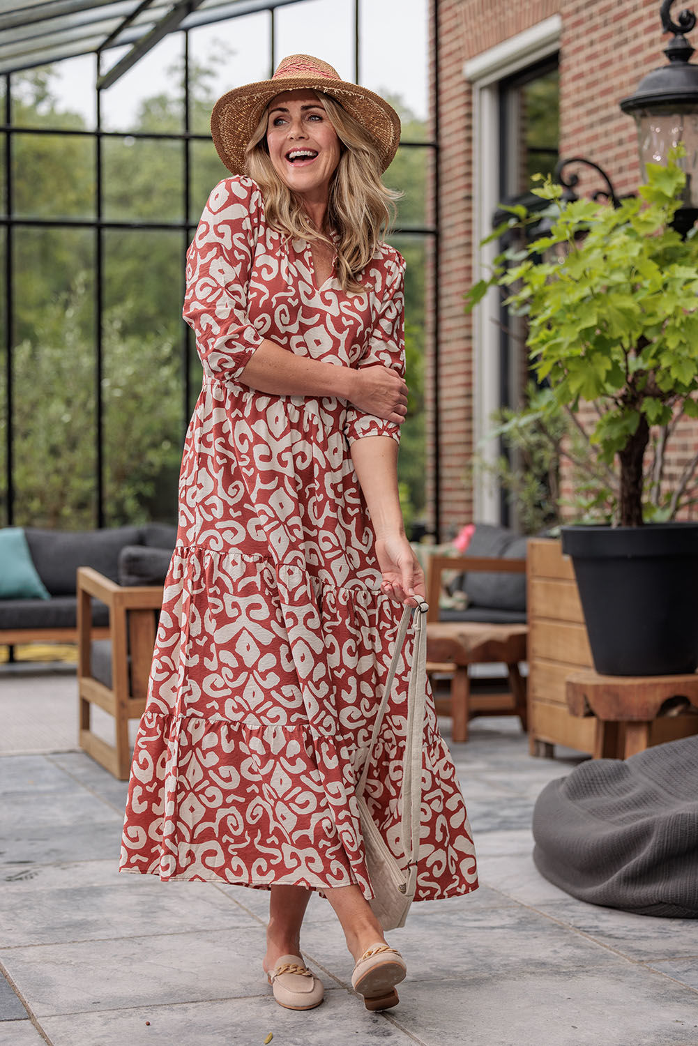 Zusss Maxi Jurk Ornamentprint Cacaobruin Zand