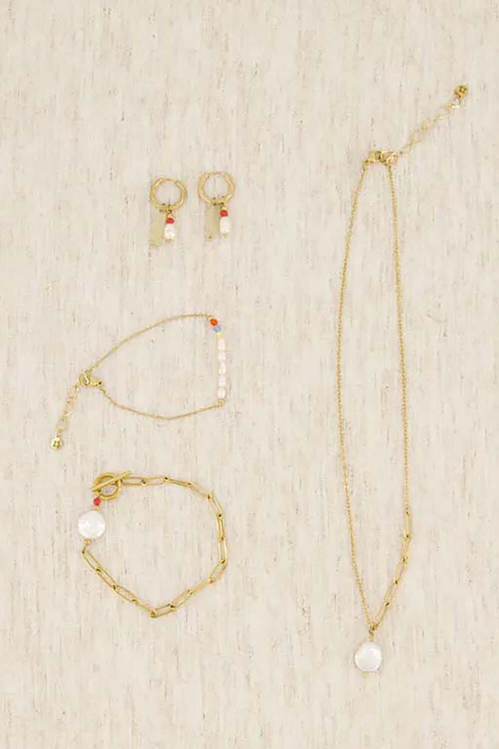 De oorbel van Zusss in bohemian stijl combineert speelsheid met elegantie. De gouden ring is versierd met kleurrijke kralen en een subtiele steen, wat zorgt voor een unieke uitstraling. Perfect om elke outfit een sprankje flair te geven en moeiteloos te combineren.