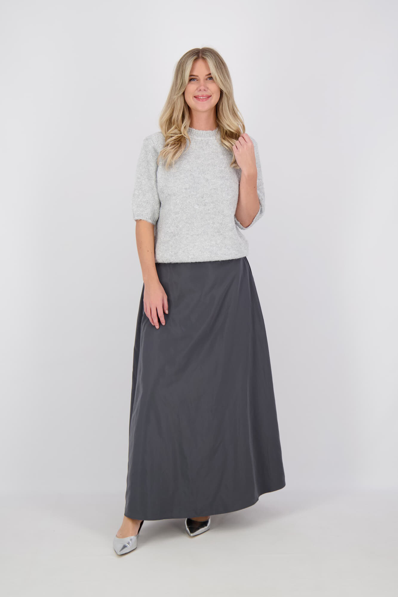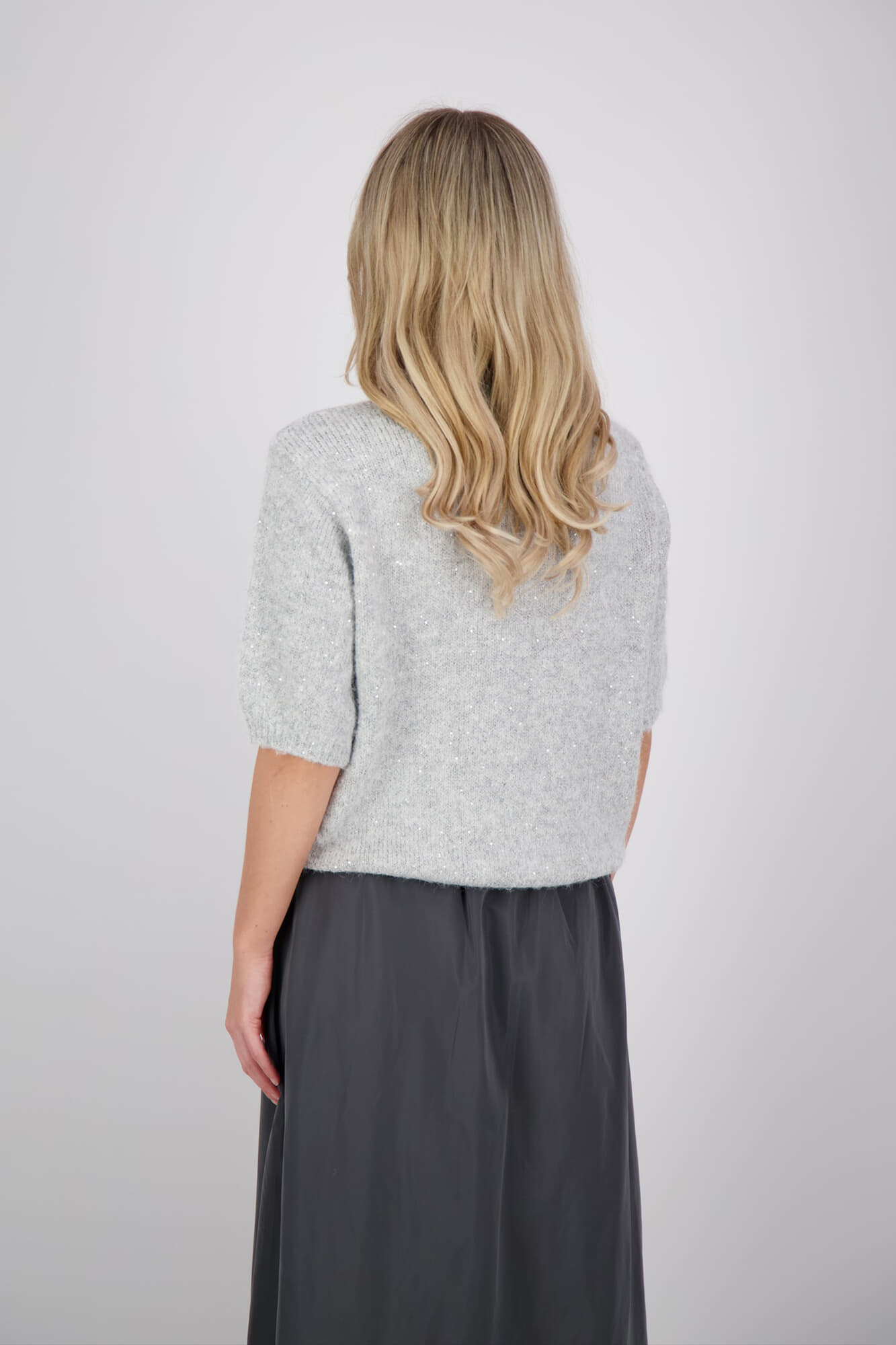 De Pailetten Trui met Ronde Hals van Zusss combineert stijl en comfort. Deze casual coltrui heeft een ronde hals, korte mouwen en een relaxed fit, perfect voor een toegankelijke uitstraling. Het effen patroon maakt het veelzijdig en eenvoudig te combineren.