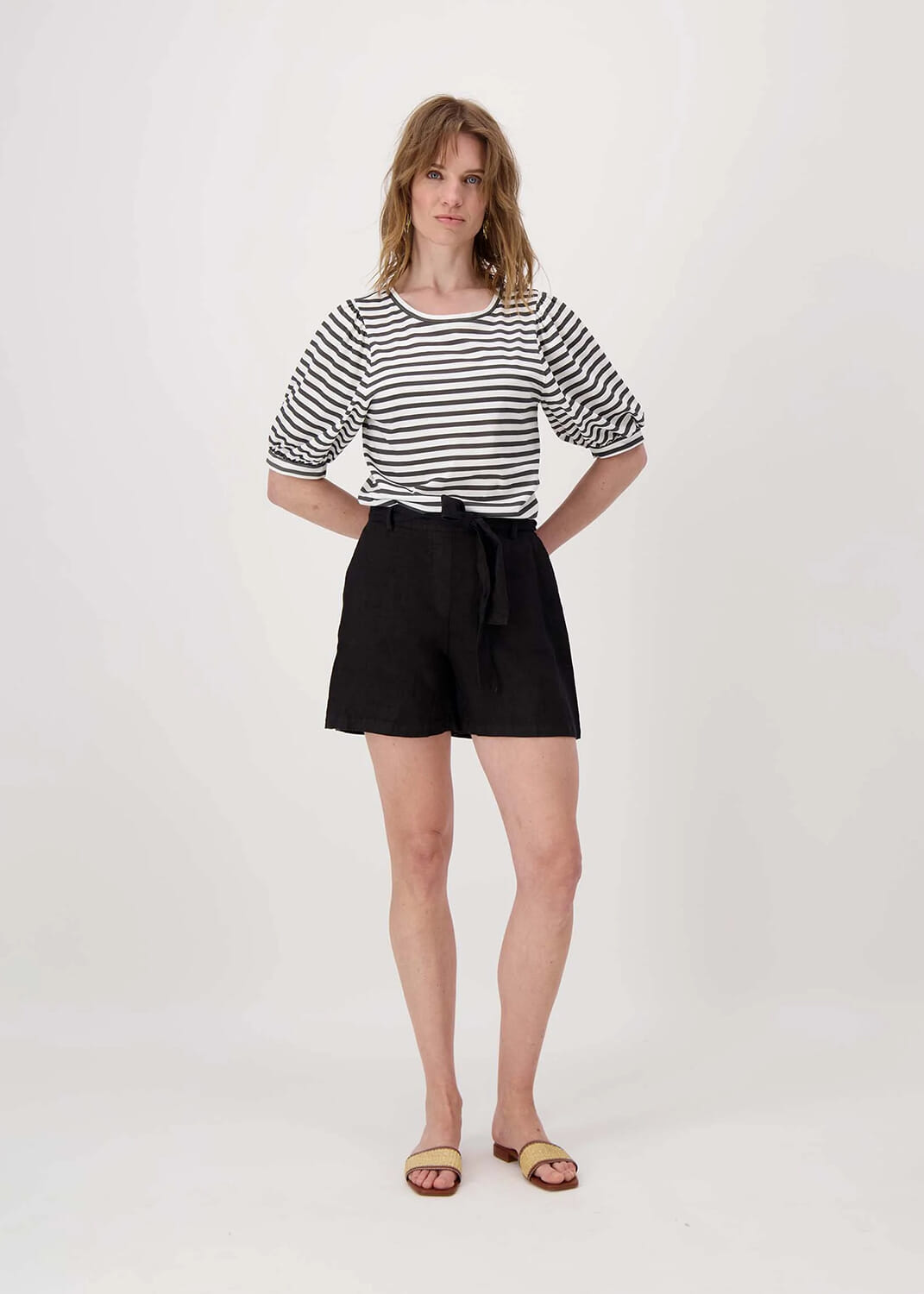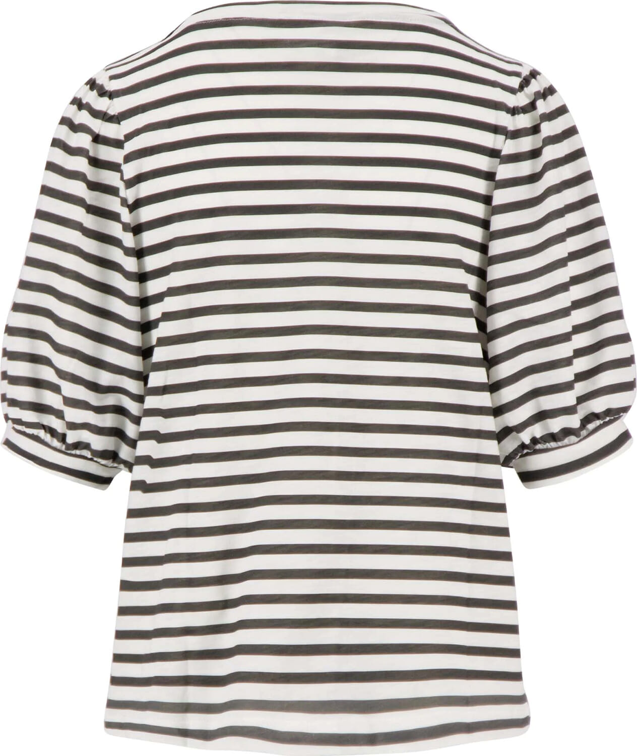 De Pof mouw top streep van Zusss is een casual dames t-shirt met een ronde hals en regular fit. Het ontwerp heeft een gestreept patroon en elastische manchetten aan de 2/4 mouwen, perfect voor een ontspannen dag. Ideaal voor casual gelegenheden.