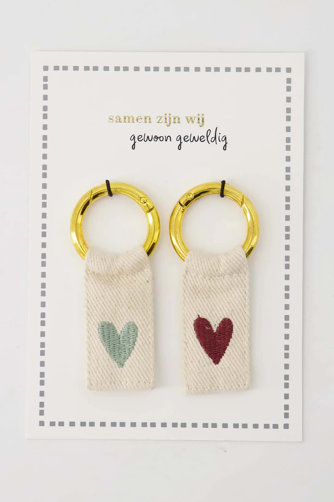 De sleutelhangers wit/rood/grijsblauw 10,5 x 14,8 cm van Zusss zijn een stijlvolle toevoeging aan elke tas. Met een minimalistisch ontwerp en subtiele hartdetails voegen ze een vleugje charme toe. Perfect voor degenen die houden van eenvoud en functionaliteit in hun accessoires.