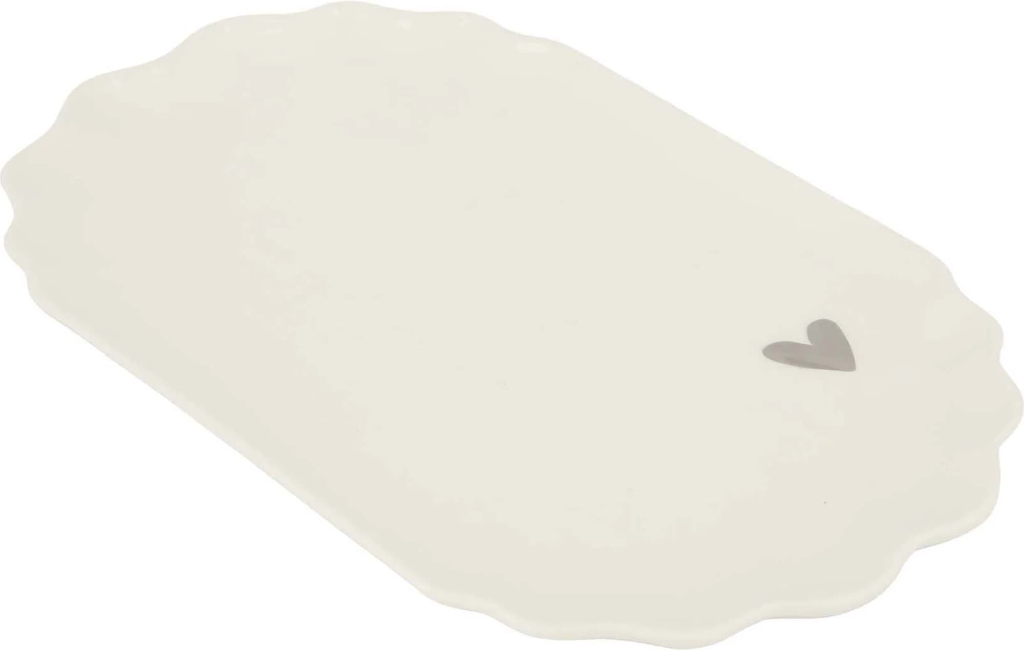 Het stylingbord keramiek hartje van Zusss is een stijlvol serviesstuk. Met een minimalistisch design en subtiel hartjespatroon in zilver, voegt het een vleugje elegantie toe aan elke tafelsetting. Perfect voor het presenteren van gerechten of decoratieve items.