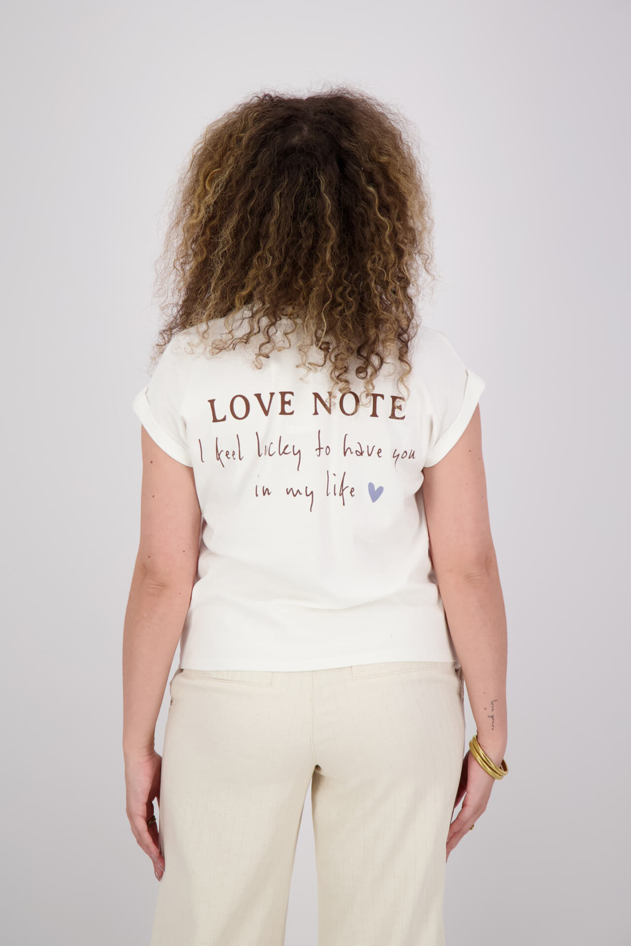 T-shirt van Zusss is een t-shirt met ronde hals, korte mouwen en een minimalistische, casual uitstraling. De effen voorkant combineert makkelijk, de rug heeft een logo-tekstprint met klein hartje. De rechte, comfortabele pasvorm draagt prettig. Combineer met jeans of een rok.