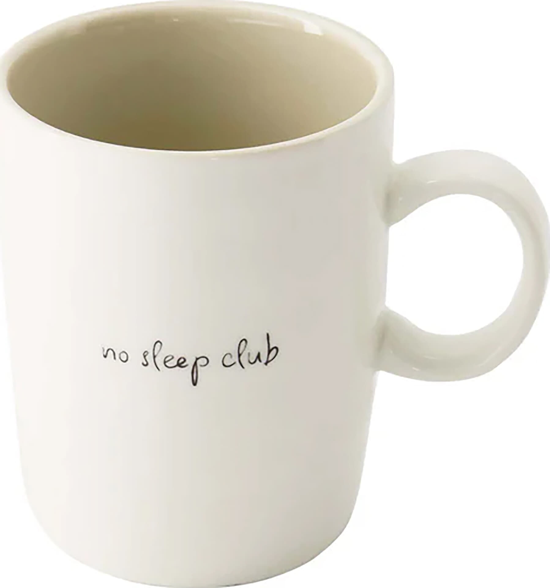De theemok no sleep club wit/zand/zwart Ø8 x 10 cm van Zusss is een stijlvol serviesstuk. Het heeft een effen patroon met een speelse tekst, perfect voor een ontspannen koffiemoment. Deze mok voegt een subtiele flair toe aan elk keukenkastje.