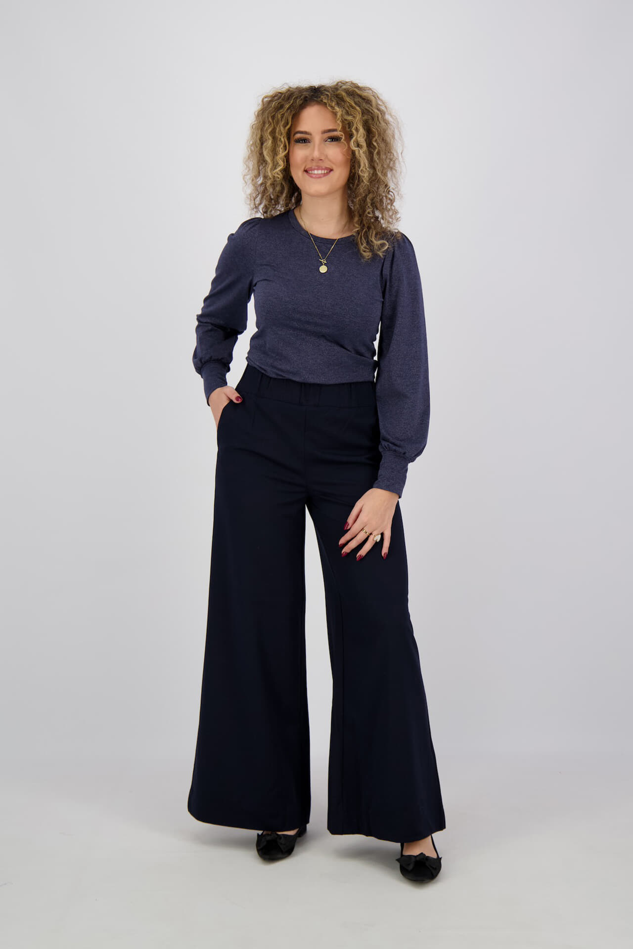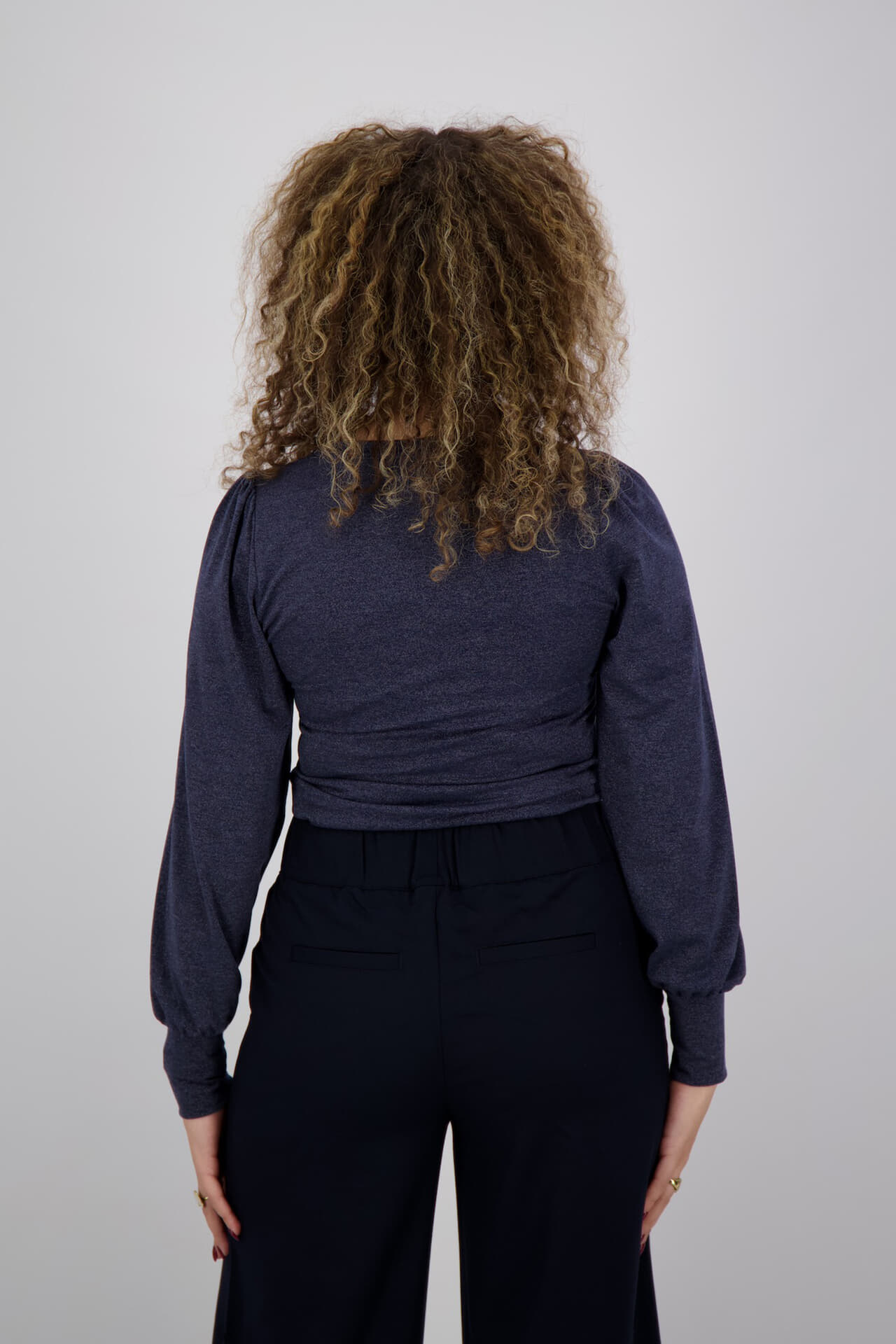 De top met lange mouw en col shimmer van Zusss is een stijlvolle dames top met een ronde hals en een getailleerde pasvorm. De lange mouwen zijn afgewerkt met manchetten zonder knopen en de top heeft een minimalistisch, effen design. Ideaal voor casual gelegenheden.
