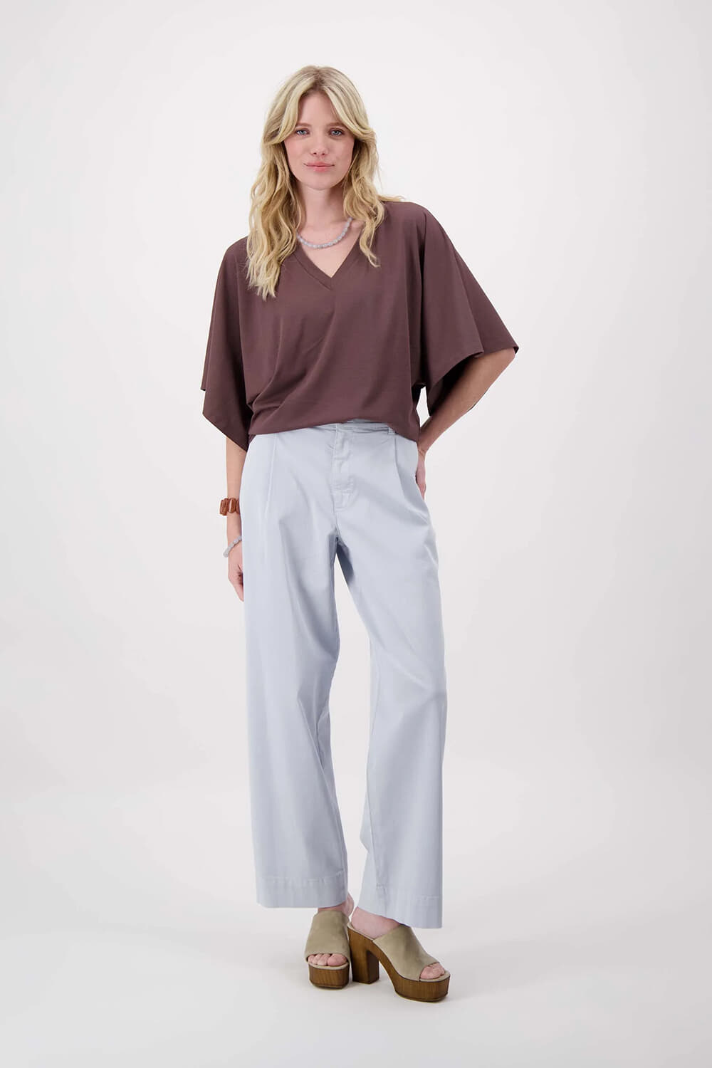 Top V hals van Zusss heeft een losse pasvorm met V-hals, korte mouw en een effen, minimalistische uitstraling. De soepele stof valt ruim en geeft bewegingsvrijheid. Draag los over een jeans of stop licht in voor een nette, casual lijn.