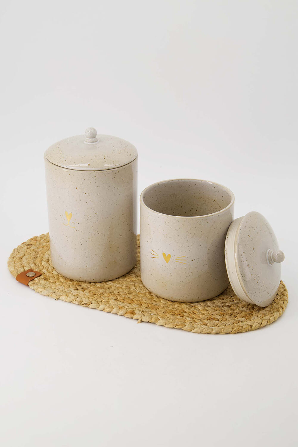 De voorraadpot kat M zand/goud van Zusss combineert speelsheid met functionaliteit. Deze gadget is versierd met schattige hartjes en heeft een elegant, minimalistisch ontwerp dat in elke keuken past. Perfect voor het opbergen van kleine benodigdheden en een stijlvol accessoire voor uw ruimte.